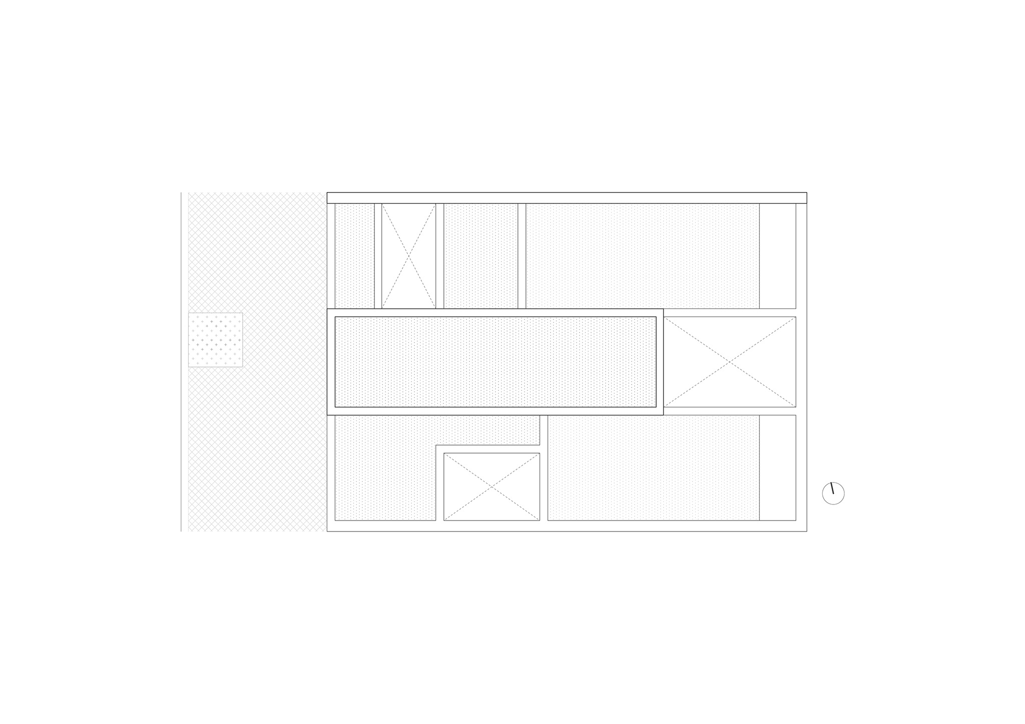 Utilizing the double-height space, the Waiting Room re-establishes its connection to the street through a system of windows facing the front, framing a partial section of public trees. This partial connection to the public exterior and the street contrasts with the pursuit of a direct connection to the outside through the internal courtyards and their vegetation. This vegetation aims to characterize a space of neutral and pristine expression, appropriate for the construction and use of healthcare architecture. The passage of time will be evident in the growth of the plants, in the way nature makes its presence felt, colonizing and appropriating the space.
