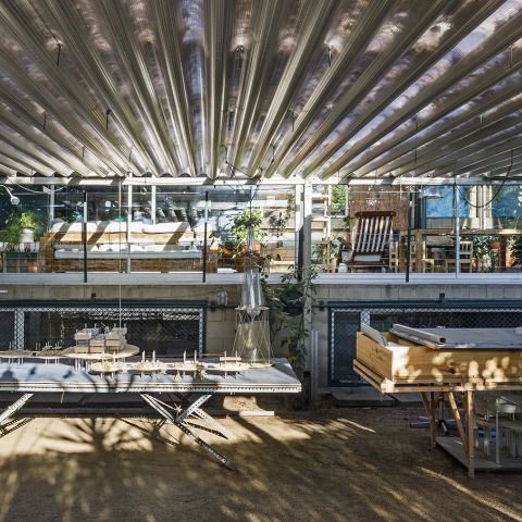 The living space is a 4x16m container. Very isolated and with a rectangular plant, it’s higher than its width to allow subdivisions placed at different heights.