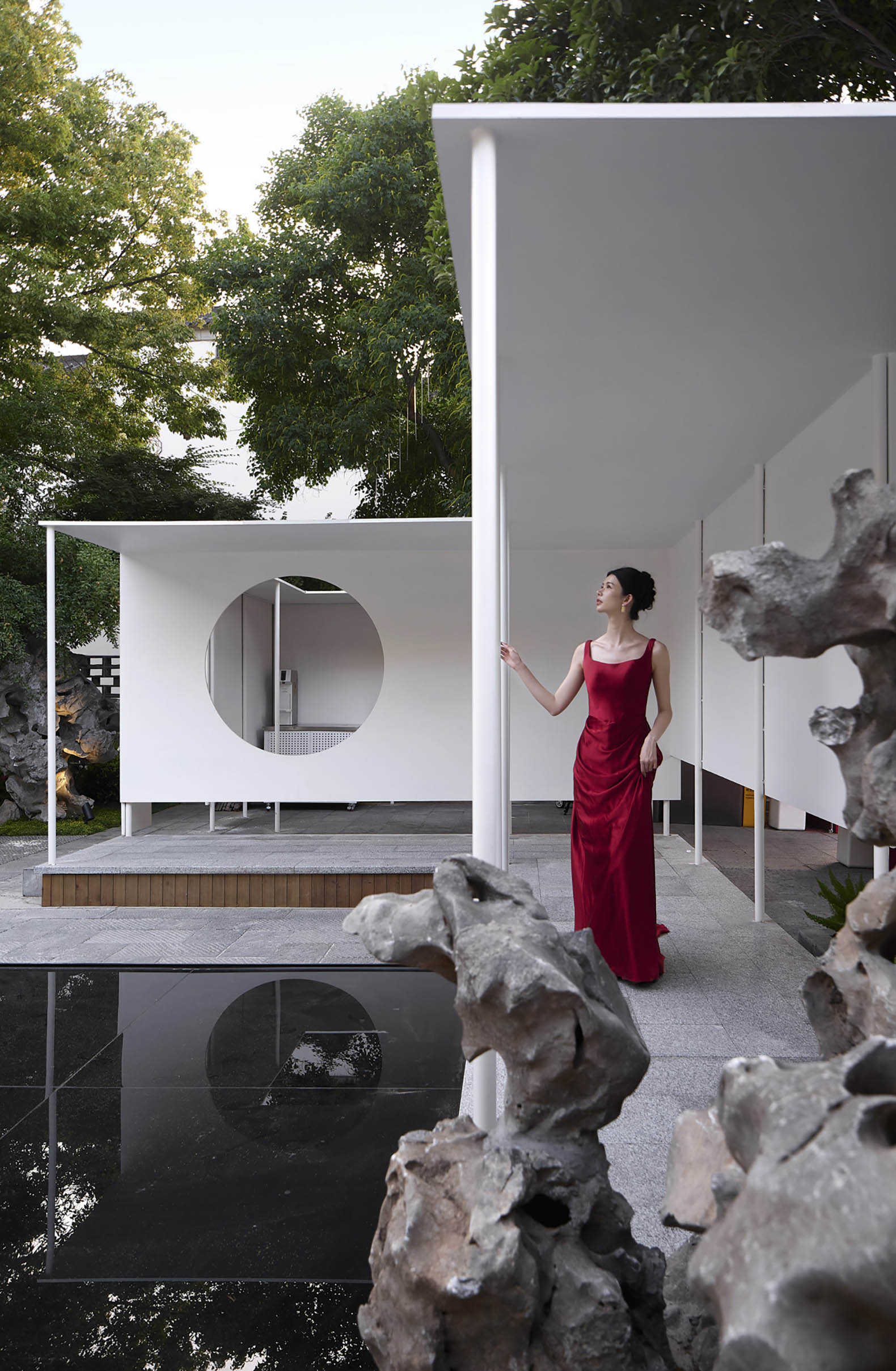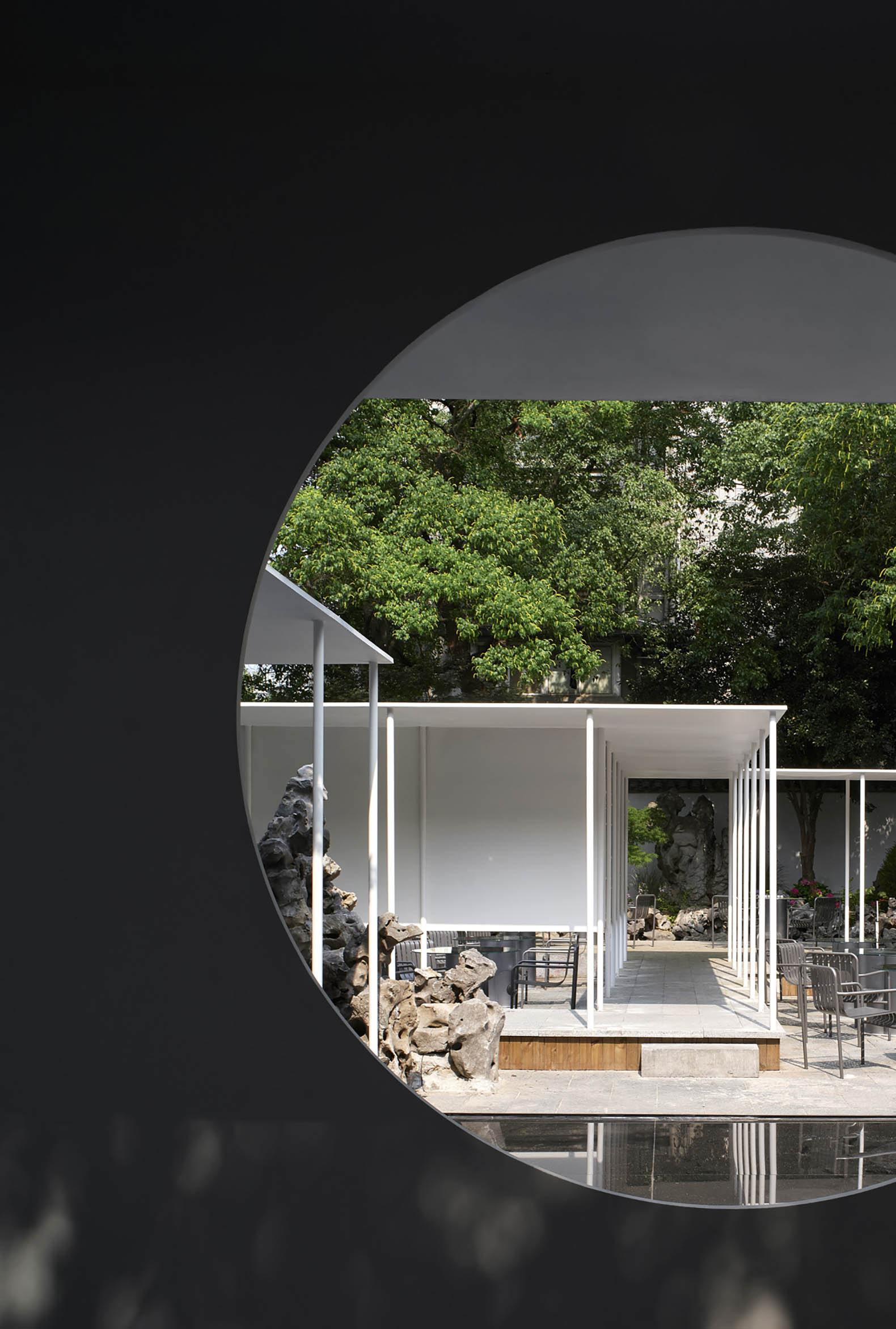 The project by Dayi Design utilizes materials such as steel, glass, and LED screens that engage in a dialogue with traditional Chinese architecture. Materials are reused to preserve cultural heritage, transforming old doors into glass partitions and Taihu stones into ornamental and functional elements throughout the gardens and pathways.