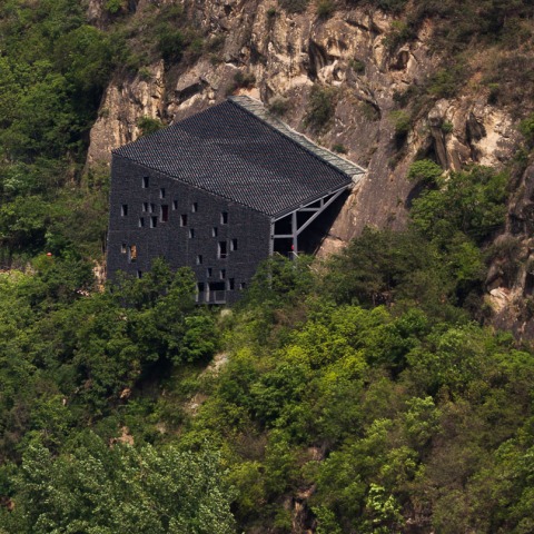 The grey tiles as common local materials are widely used in the project as one of the major materials both on the walls and the roof. Its color is similar to that of the cliff and easy to blend into the immediate environment. Besides, with the time flies and under the local climatic conditions, moss would appear on those tiles, which would further integrate the building into its context and would bring a sense of organic growth to it.