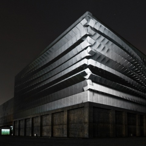 It is a live audio/visual performance composed of animated monochrome geometrical shapes matching the real size and form of the quadrilateral alluminium modules which form the facade of the building. The visual performance is accompanied with a digitally produced soundscape consisting of abstract sounds synchronized to the movement of images re-shaping and transforming the building on which they are projected. The building in turn influences and transforms the projections as well.