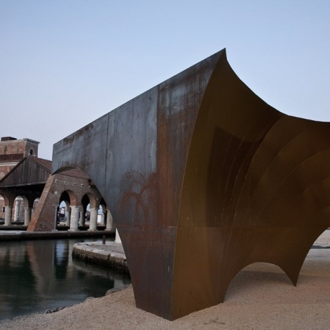 Outside of the Arsenale find "Radix" the installation designed by the Portuguese Francisco and Manuel Aires Mateus. It consists of a steel structure that sits on piers which were designed by Jacopo Sansovino between 1568 and 1573. The installation intends to create a continuity with arcaded Arsenal galleries.