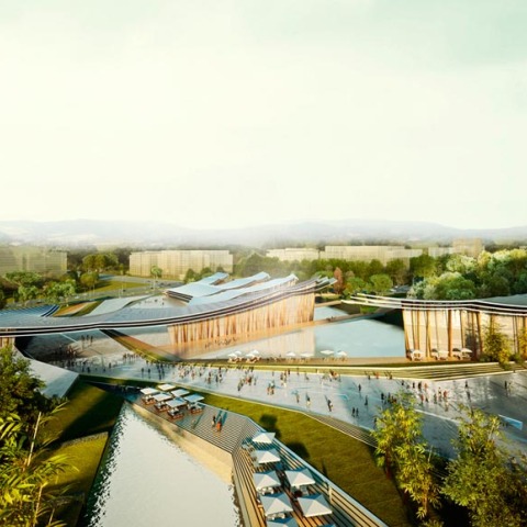 The design of the complex is inspired by the important personality of the Song dynasty, in particular the poet Su Dongpo - the most versatile genius in the history of Chinese literature. The master plan is based on the traditional drawings of buildings made of bamboo and on Su Dongpo’s poems, while the buildings represent bamboo leaves, and the bands of the landscape – water and vegetation – represent bamboo branches and logs.