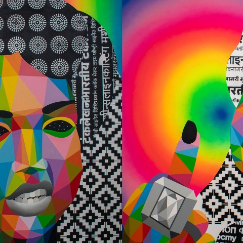 The exhibition 'The Rainbow Mountains' by Okuda San Miguel is a return to its most surrealist era. Inspired by his mural The Secret Mountain (Crans Montana, Switzerland, 2015), the artist combines some of his most common themes (man and nature, freedom, metamorphosis ...) with ideas raised in his latest works (places idyllic, mutant creatures, dystopias ...). A single show that invites us to immerse ourselves in the singular universe of Okuda during the biggest appointment of new contemporary art in our country.