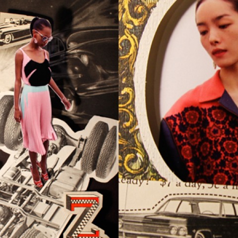 "For the Spring/Summer 2012 look-book Real Fantasies, Prada explores the nostalgia of hot rodding, golfing, picnicking, the space race, and other wholesome past times. Told through a sequence of 100% handmade collages - continuing a new tradition of hand-craftsmanship started last season - Real Fantasies is a palimpsest of photography, graphics and text that pulls the reader into a realm of hyper reality."