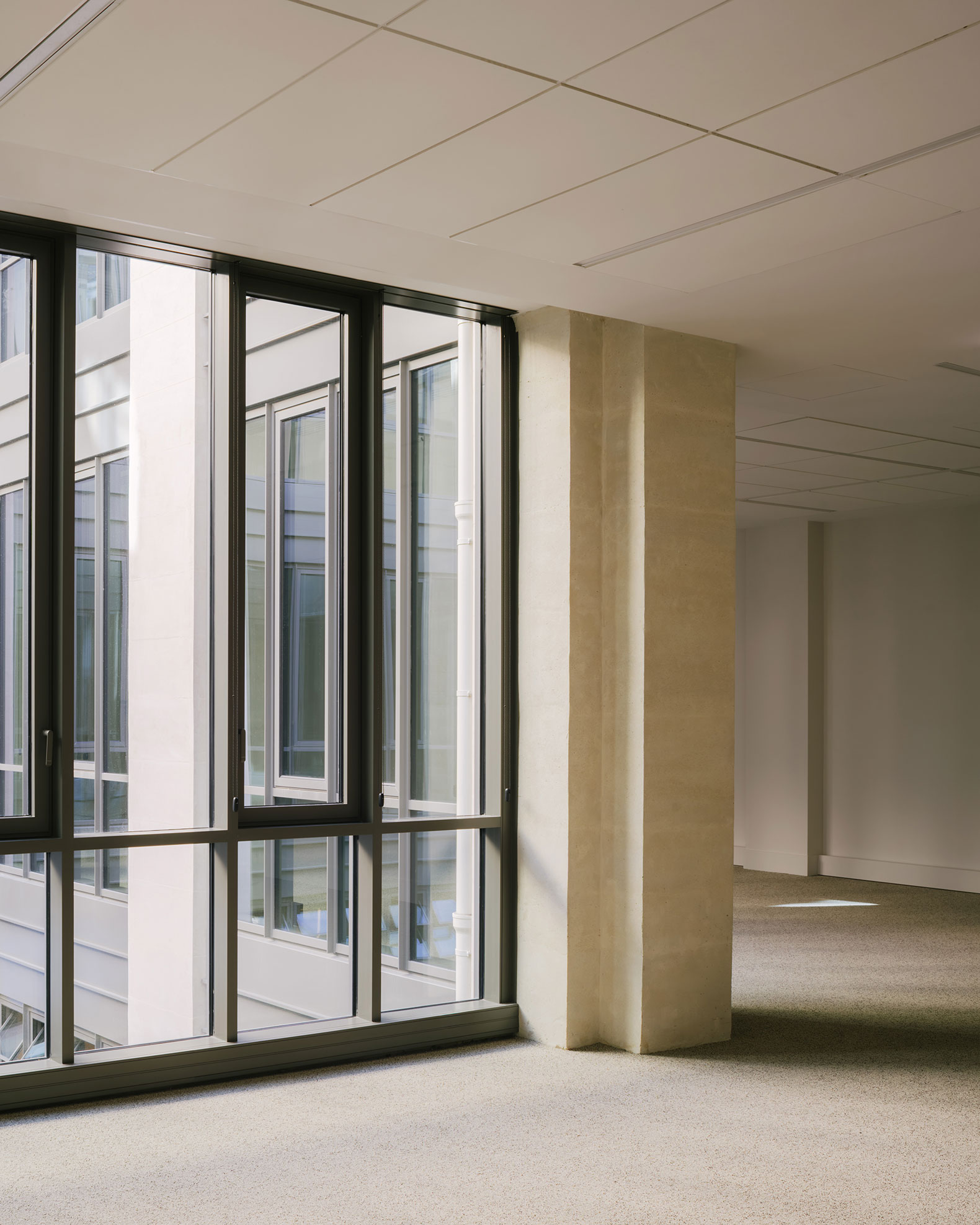Once the stone pillars were revealed, new window frames were carefully designed to evoke the industrial past of the site, while upgrading both comfort and energy performance.
