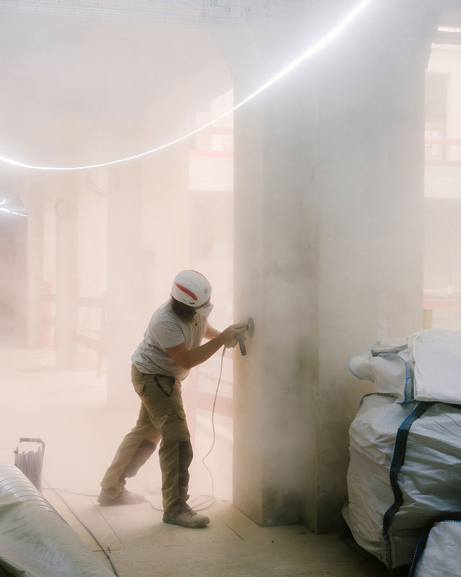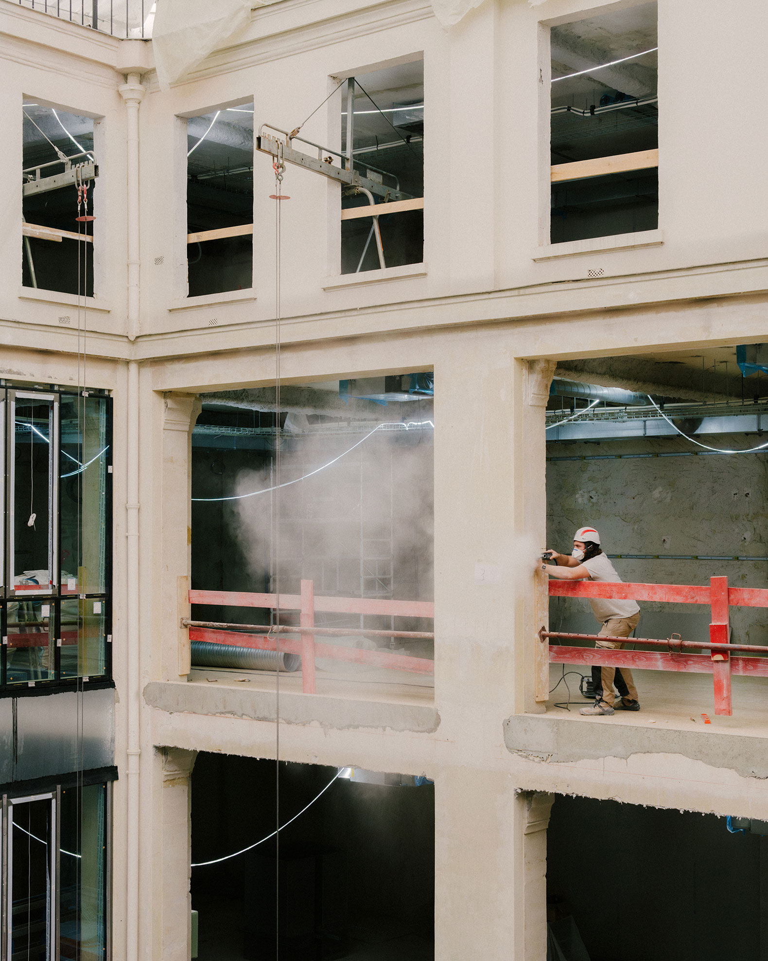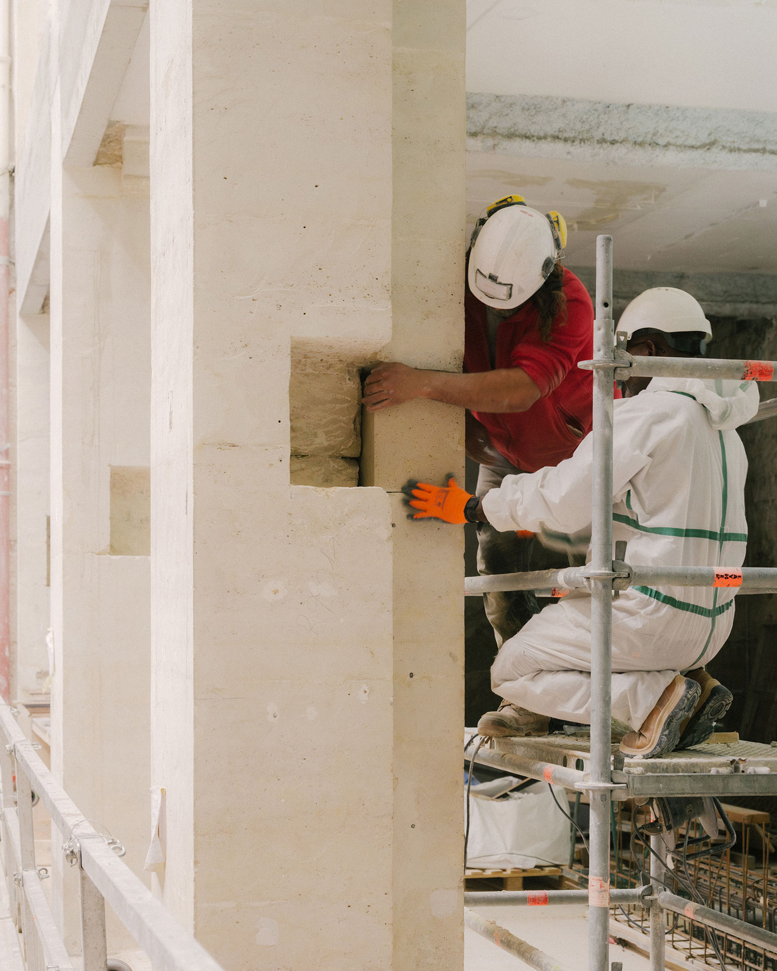 The meticulous renovation by COVE Architectes and CALQ Architectes is structured around two main operations: the renovation of the façades and the restoration of the massive stone pillars. To meet contemporary standards of energy efficiency and comfort, new openings were incorporated that subtly evoke the rhythm and character of the original workshops, while the painstaking work of master stonemasons enabled the complete revitalisation of the original structure.
