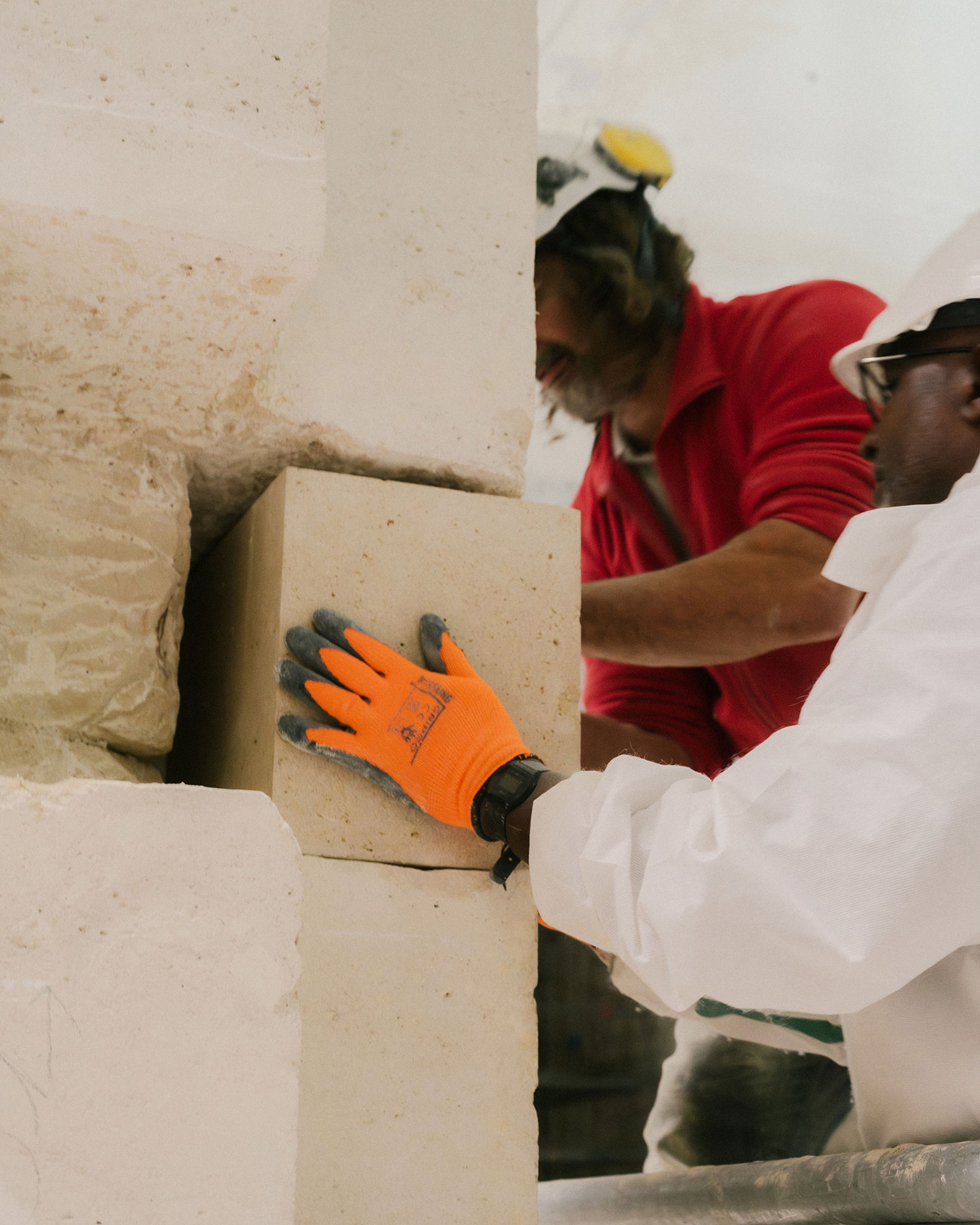 Damaged by the 1980s works and embedded with metal beams and cement mortar, these stone pillars revealed their fragility to us, as well as the care required to ensure their preservation.