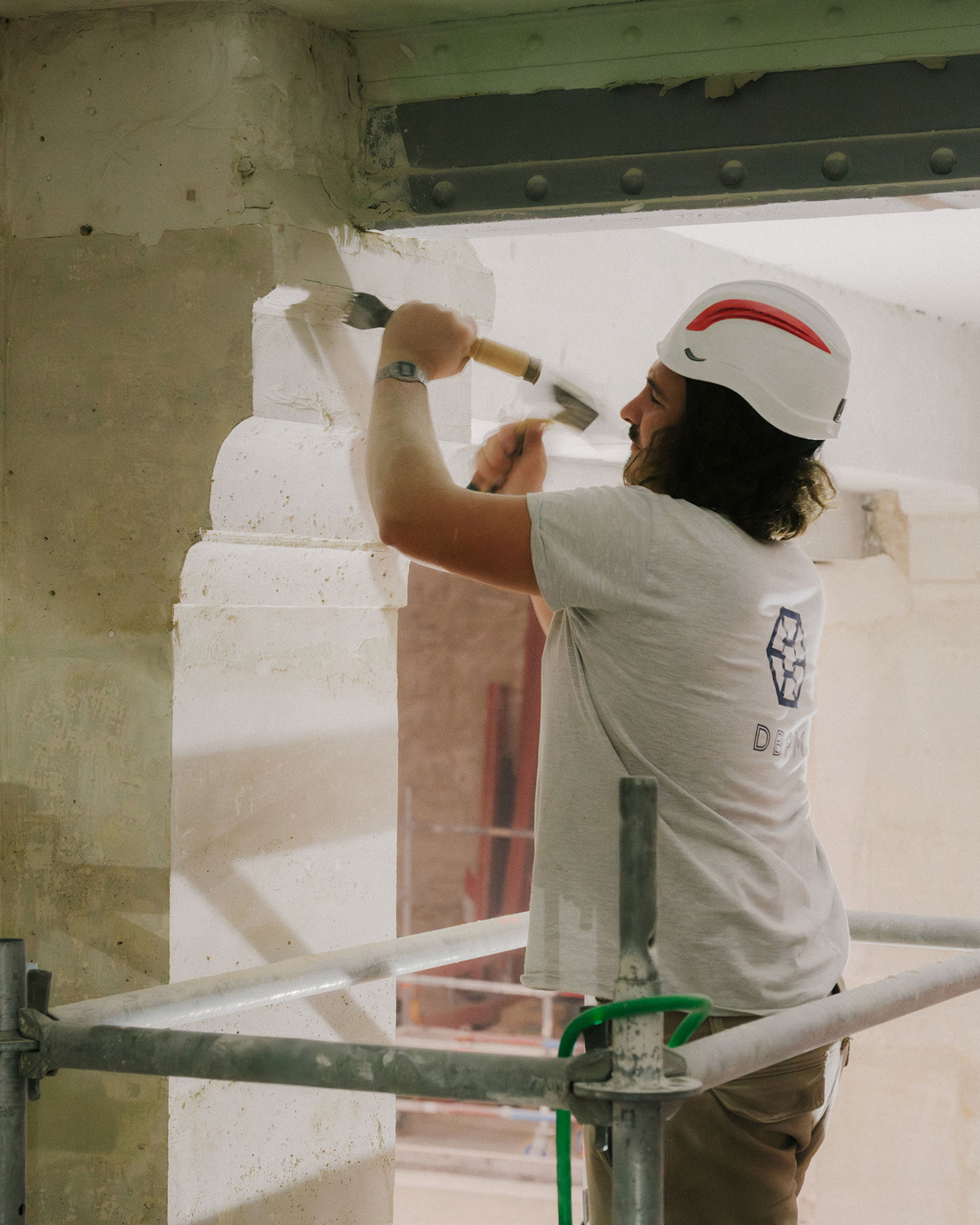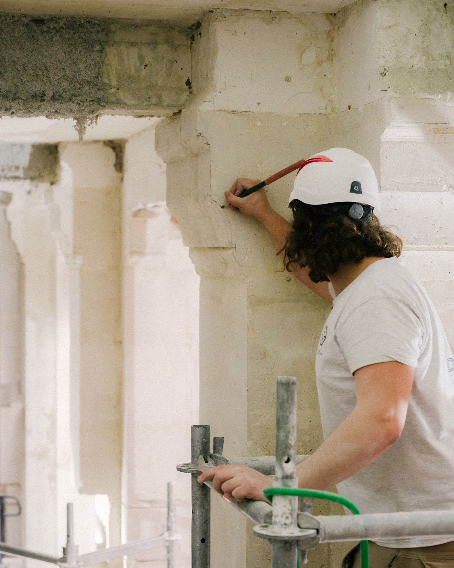 Master stonemasons deployed their craft to restore this primary structure. Through cutting, carving, grafting, and fine chiseling, the material was carefully tended, allowing these pillars to be fully revitalized.