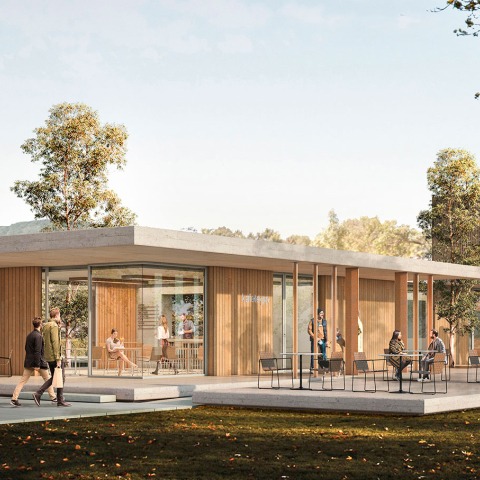 Between two worlds, vibrating between the street that does not want to obstruct the vision of the park and the park that wants to get closer and find its backdrop as a filter to the building.