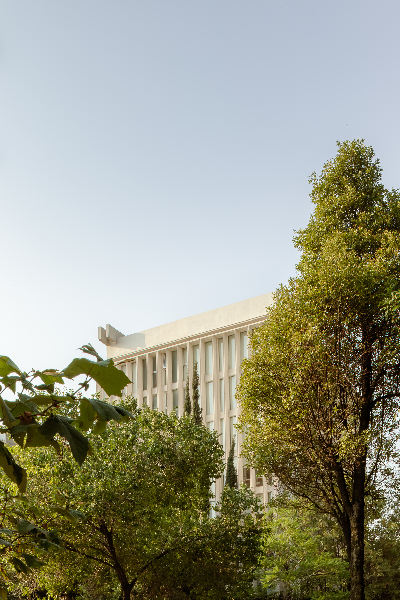 To address this dual condition and factors such as sunlight, ventilation, noise, and views, the architects developed an envelope that filters and regulates the relationship between the interior and exterior, protecting and connecting the building to its surroundings simultaneously.