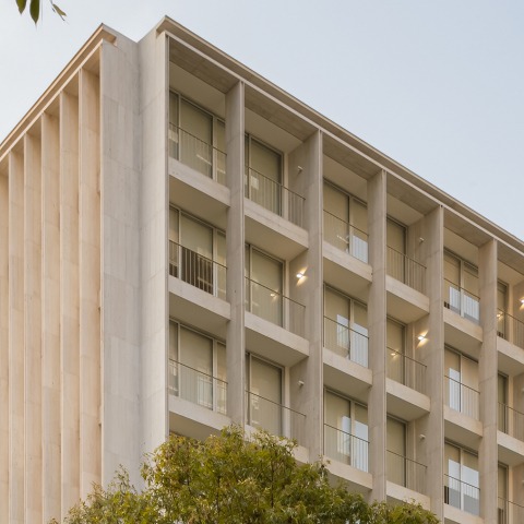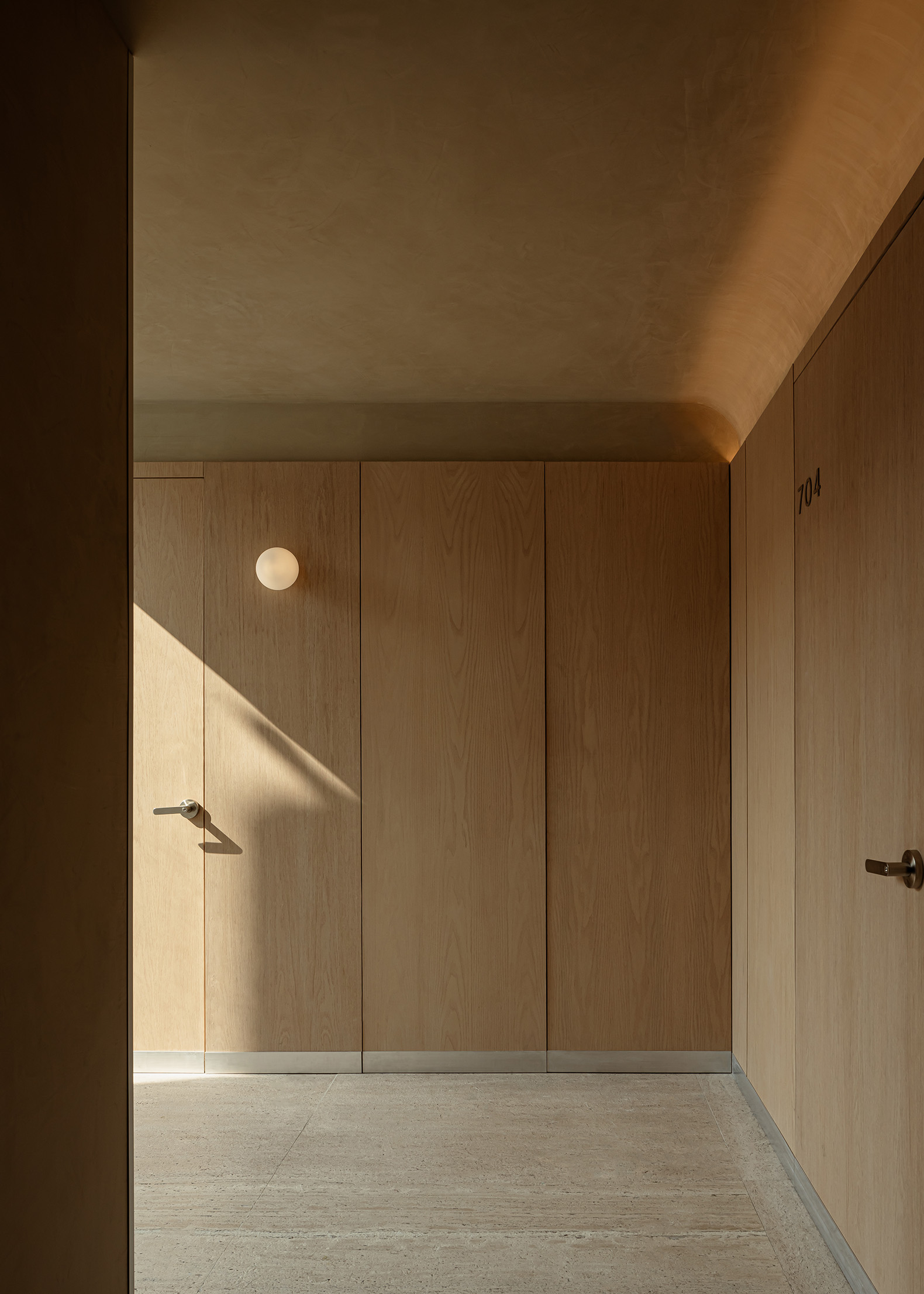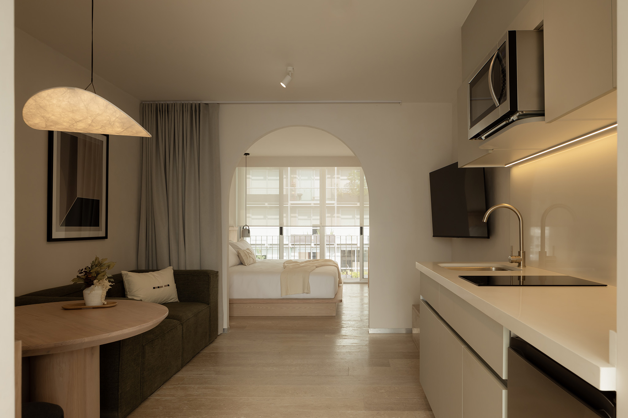Organized across seven levels, the project undertaken by De Rungs Arquitectos and Firmaafeatures apartments ranging from 30 to 45 square meters, designed for short-term stays. These functional and adaptable units are built with warm-toned materials, resulting in a serene and welcoming atmosphere.