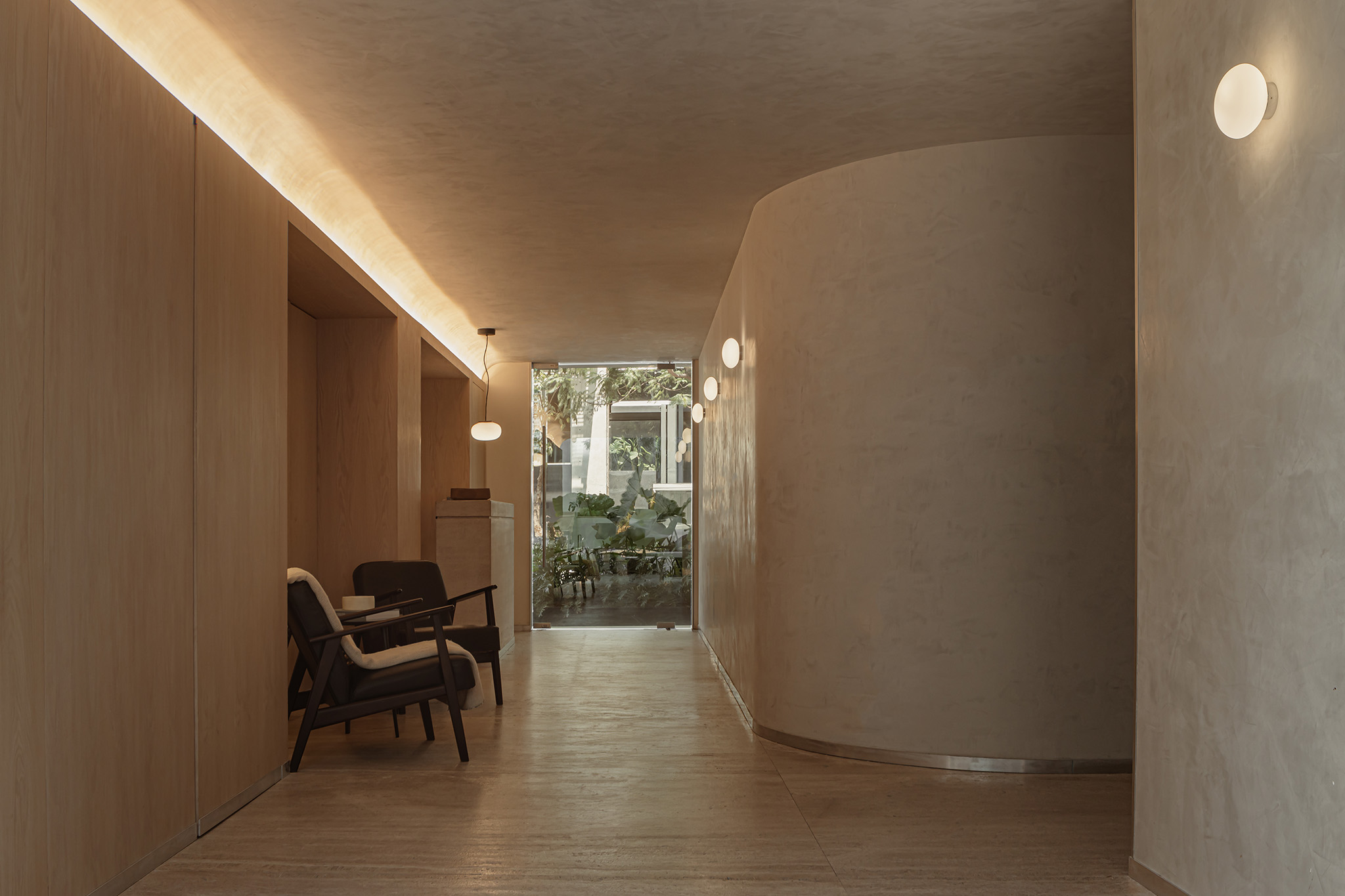 “The building sits between two very different streets: one quiet and the other a busy avenue. This inspired us to design an envelope that could respond to both. The façade filters light, noise, and views, creating an interior space that is connected to its surroundings without being overwhelmed by them.”