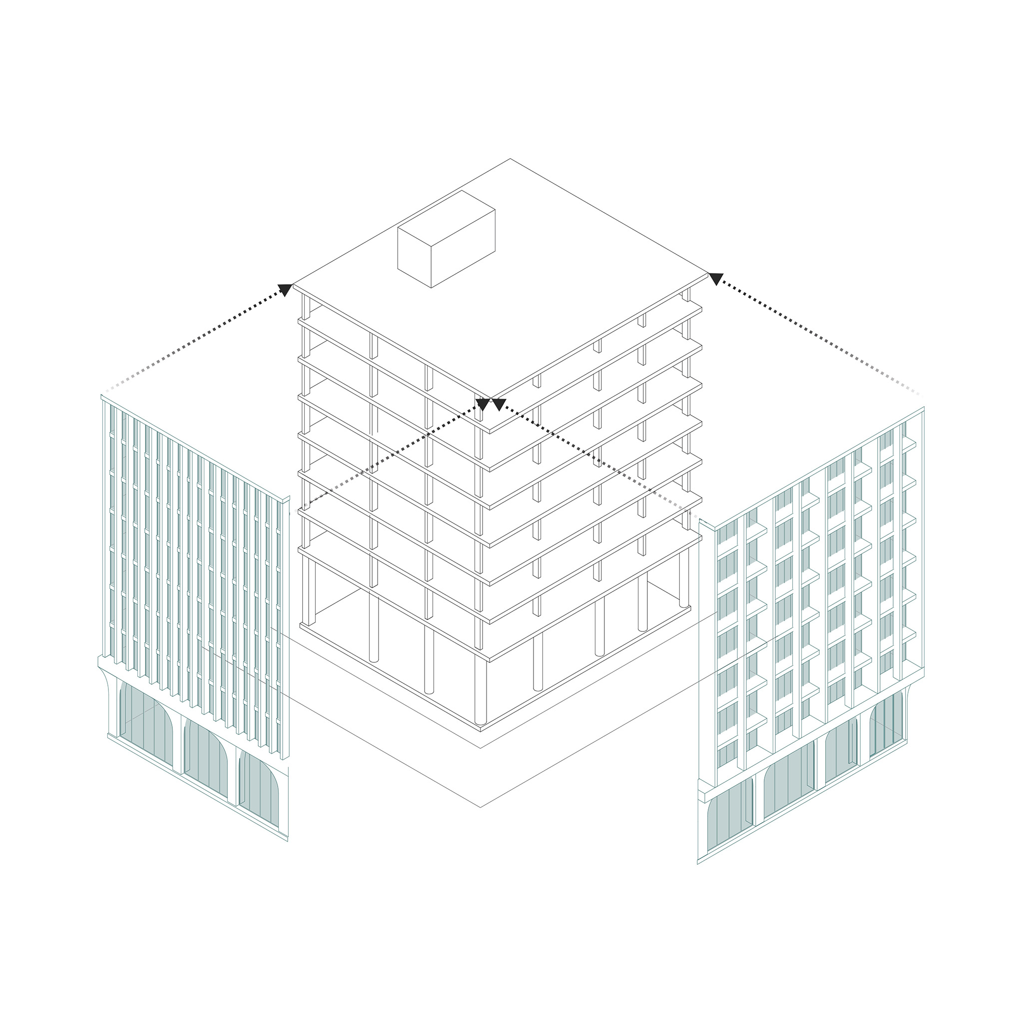 Rather than erasing what already existed, the project embraces adaptation as a sustainable approach to producing housing. This strategy extends the life of the city’s built environment and honors the passage of time.