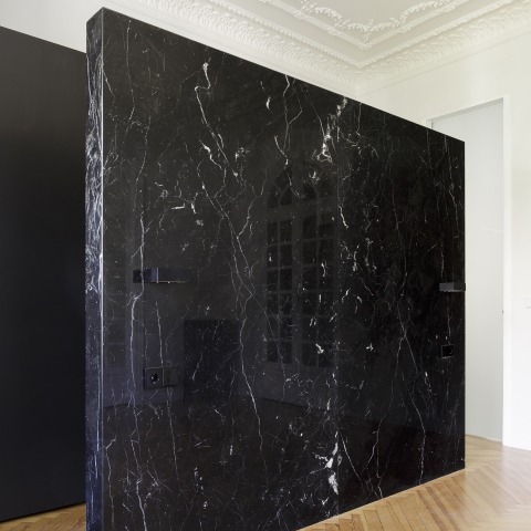 The classic timeless image of the house is reinforced with new materials such as black marble for the headboard and white in the bathrooms and kitchen in the largest possible format provided by the tables available from the quarry.