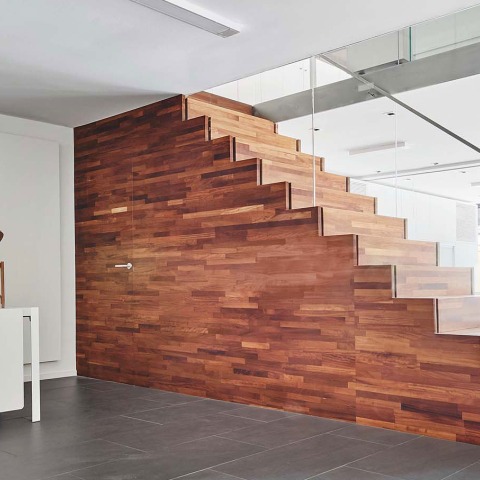As far as the material is concerned, the pavements of both floors are differentiated, given the expected daily use and the traffic of people: pavement with a stony texture and resistant on the ground floor, and a wooden pavement on the first floor. As for the rest of elements, pavements are proposed with neutral colors and punctually with warm woods or plant elements.