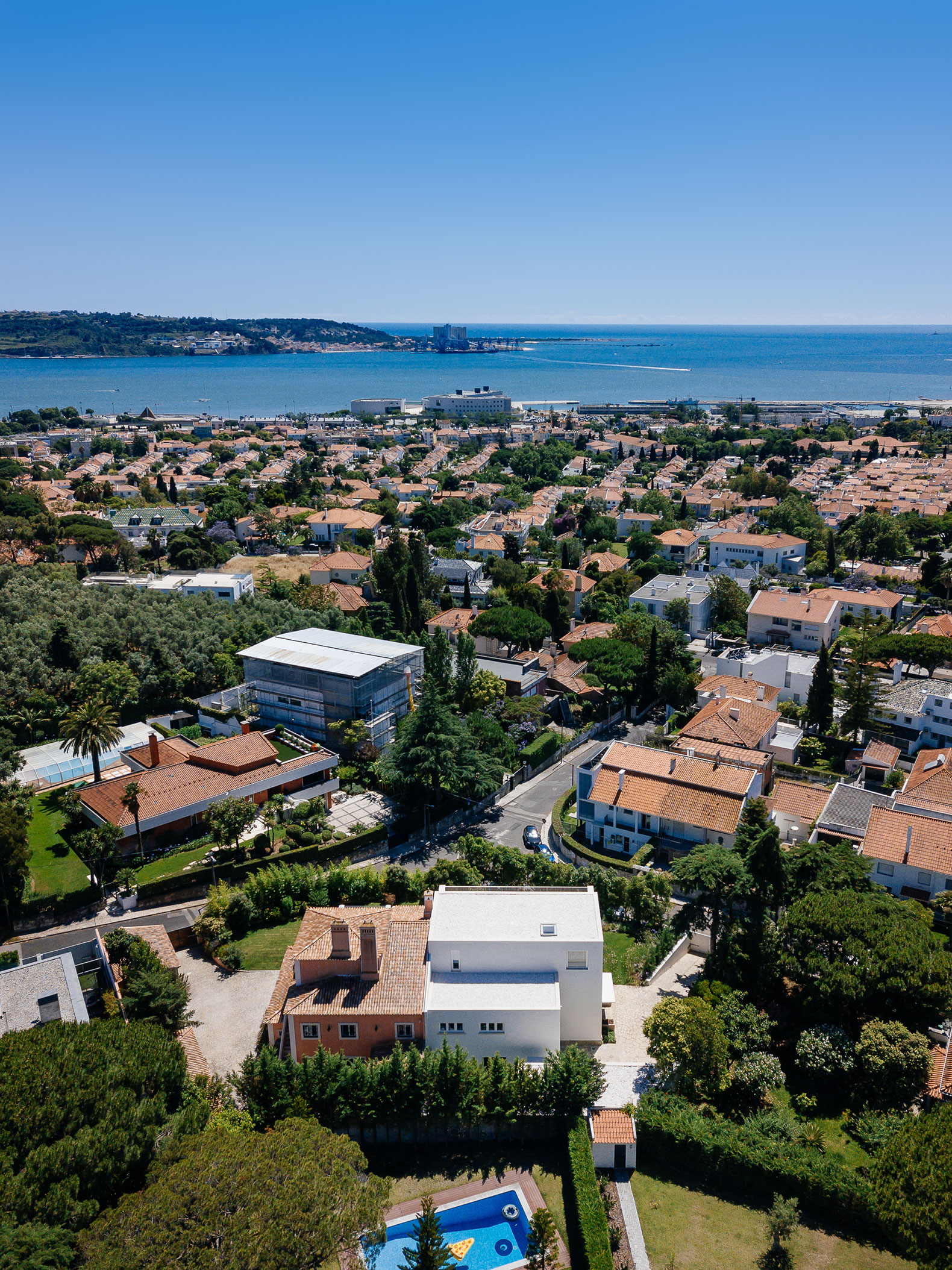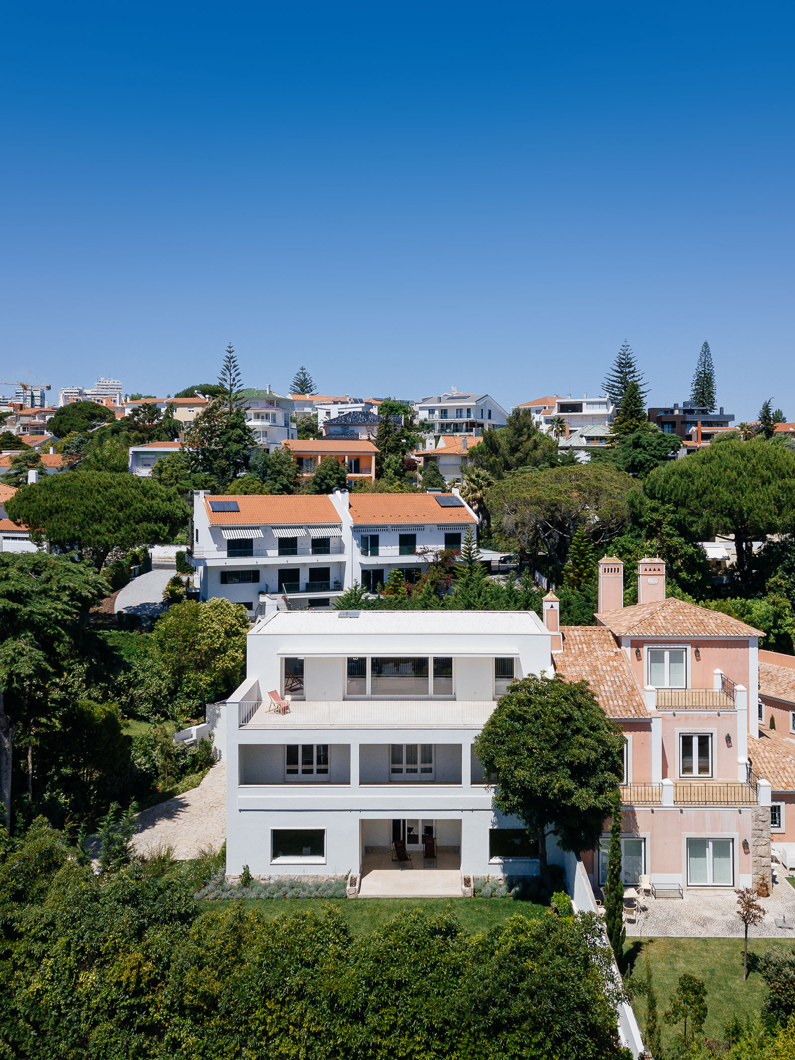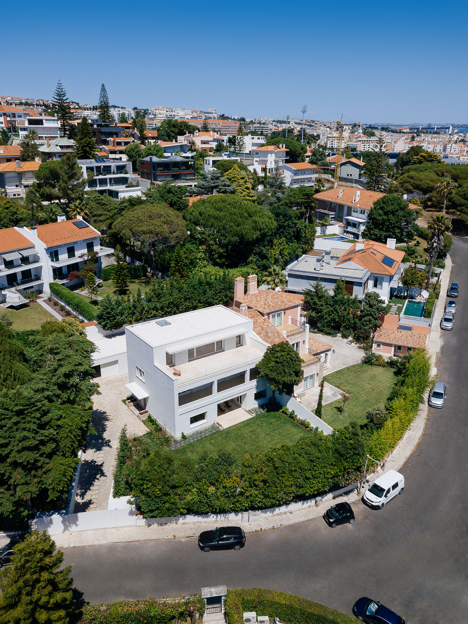 The house is located in the Bairro do Restelo district and comprises one of two dwellings that were formerly two-family houses designed by Alexandre Steinkritzer Bastos in 1953.