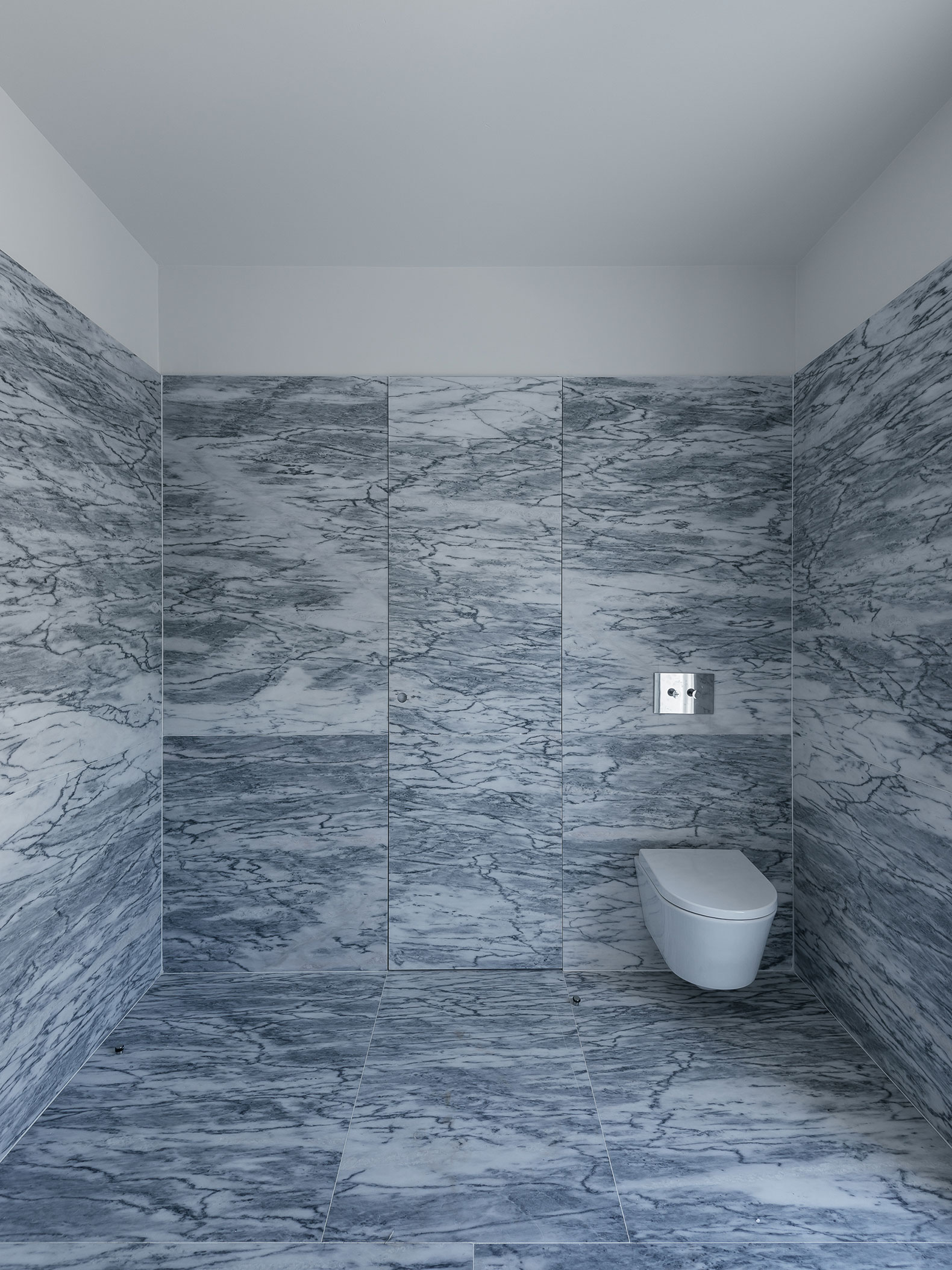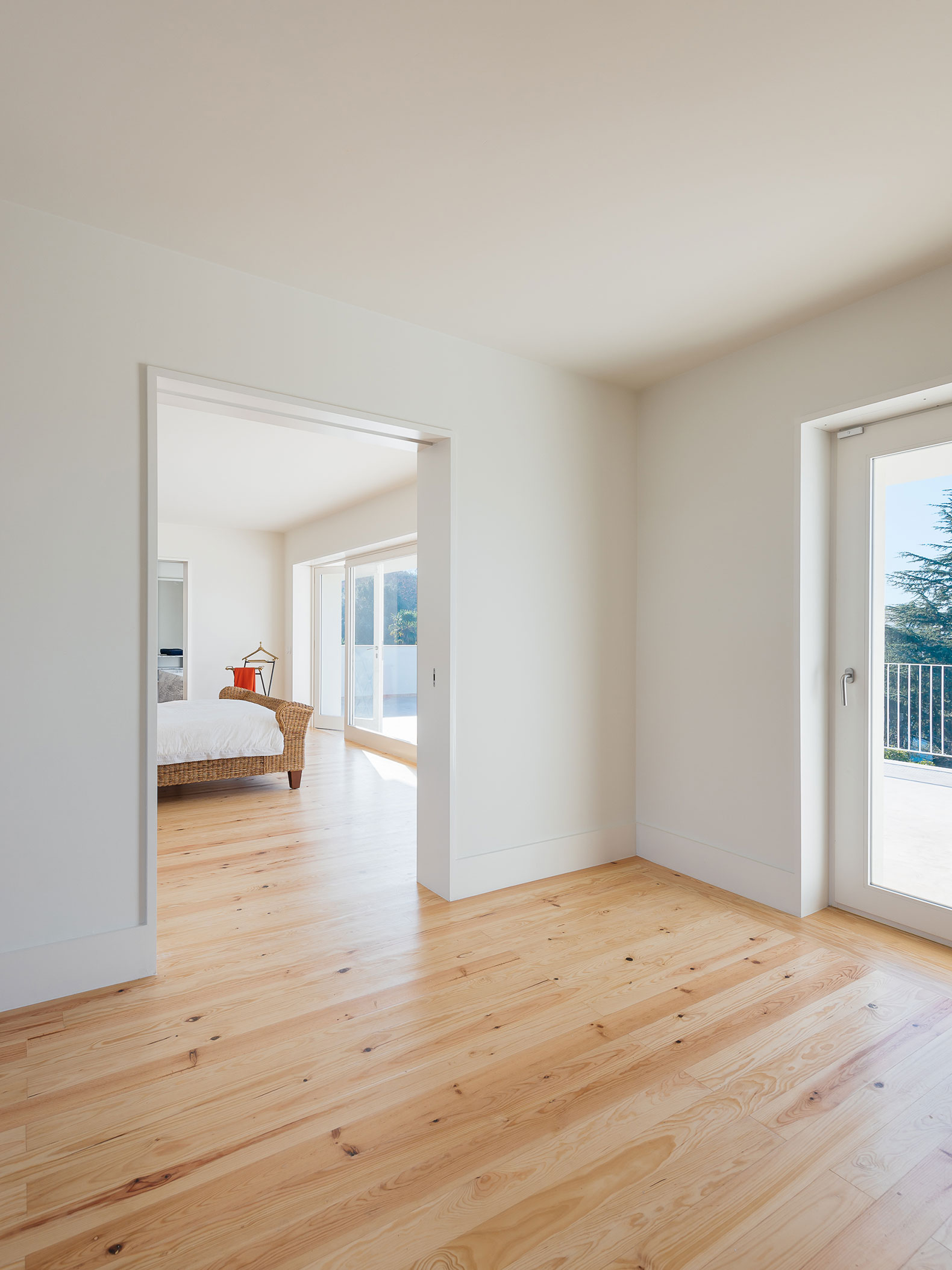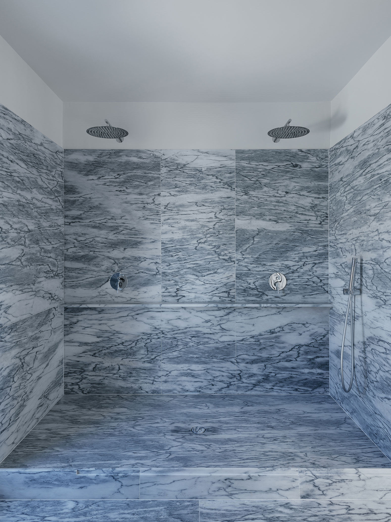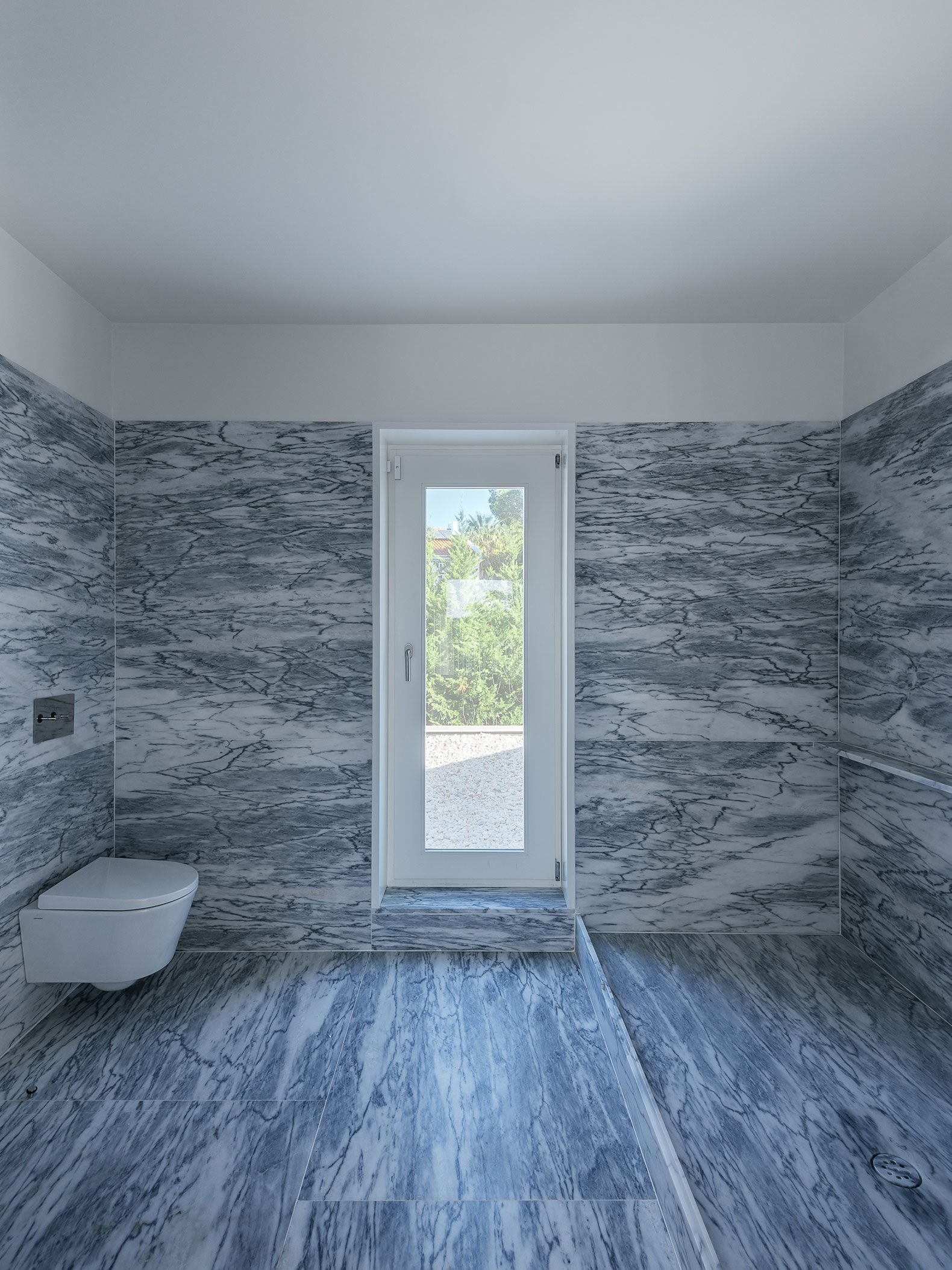 In the alignments of the new flat floor covering, the highly rational elevations and apparent symmetry find a reflection of a formal syntax that cuts across the entire house. The internal spaces are clearly joined and obey a consistent geometry and a firm functional hierarchy. The materials are perennial and receive natural light, creating a dialogue with a succinct vocabulary of textures. And the sequence of neutral, sober spaces exposed to the emptiness of the interiors creates a form of silence, in which all elements serenely occupy their places.