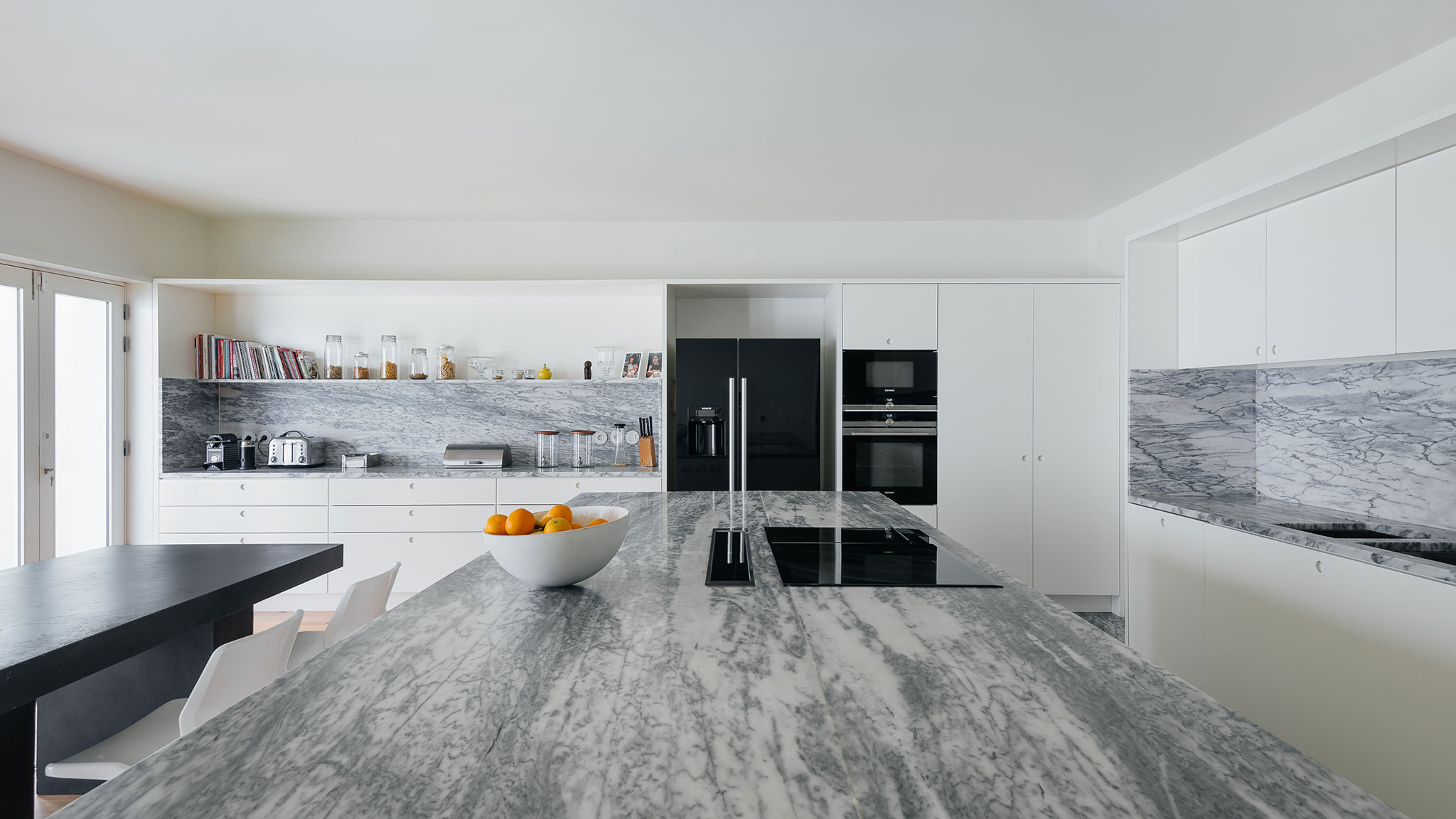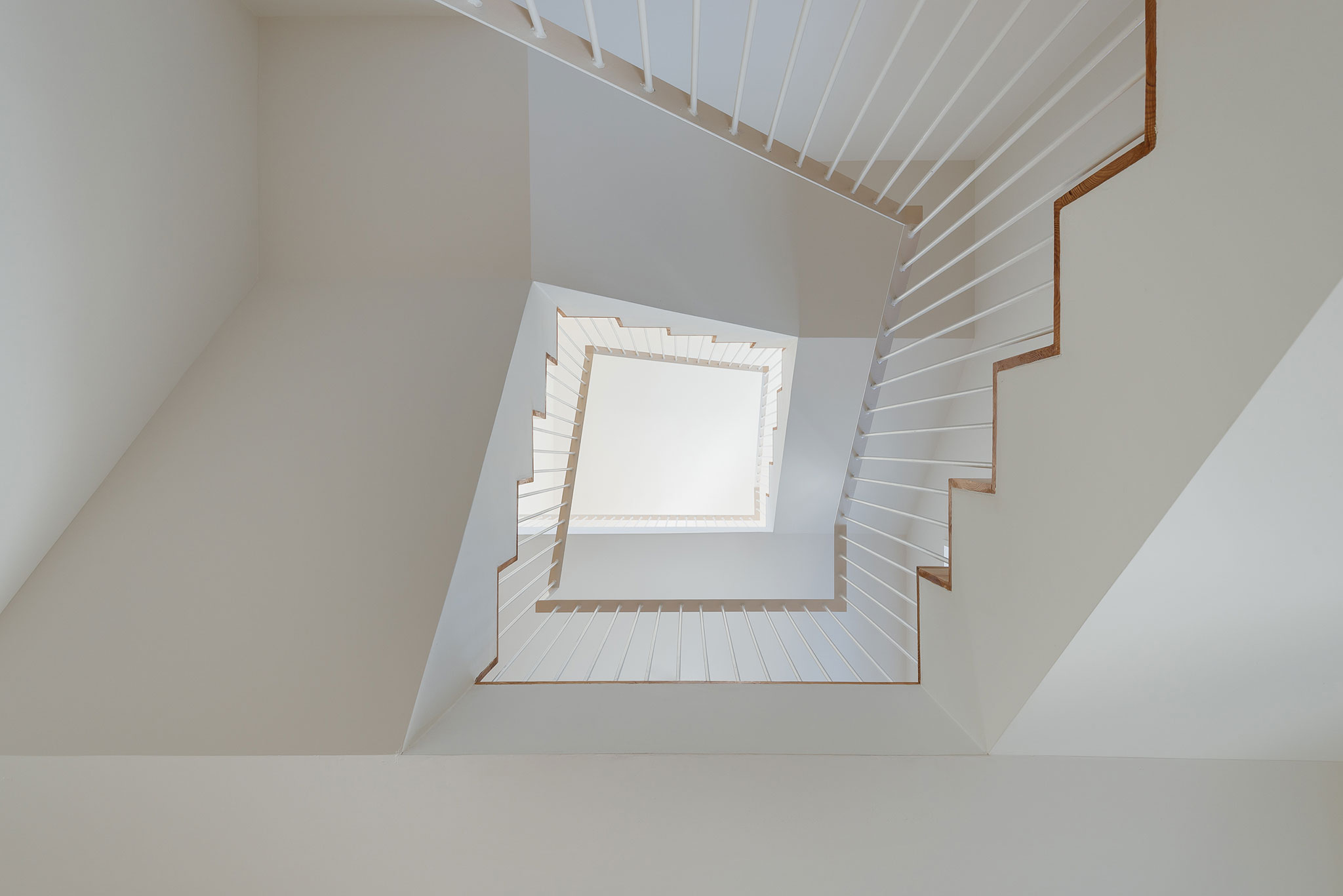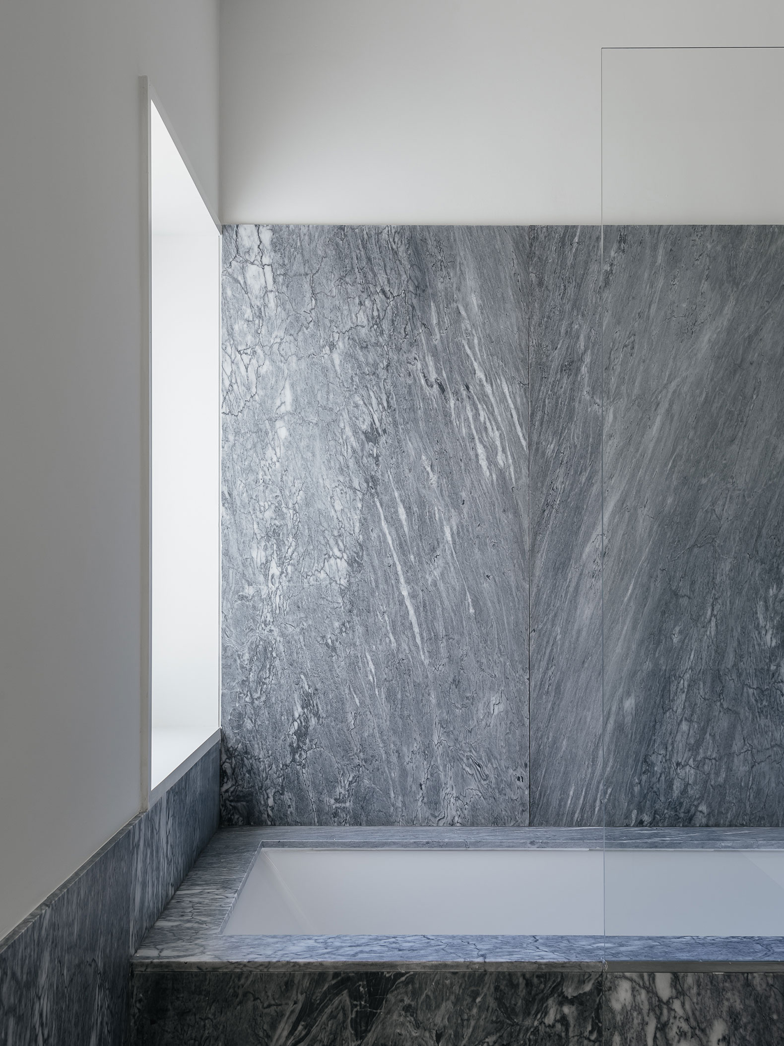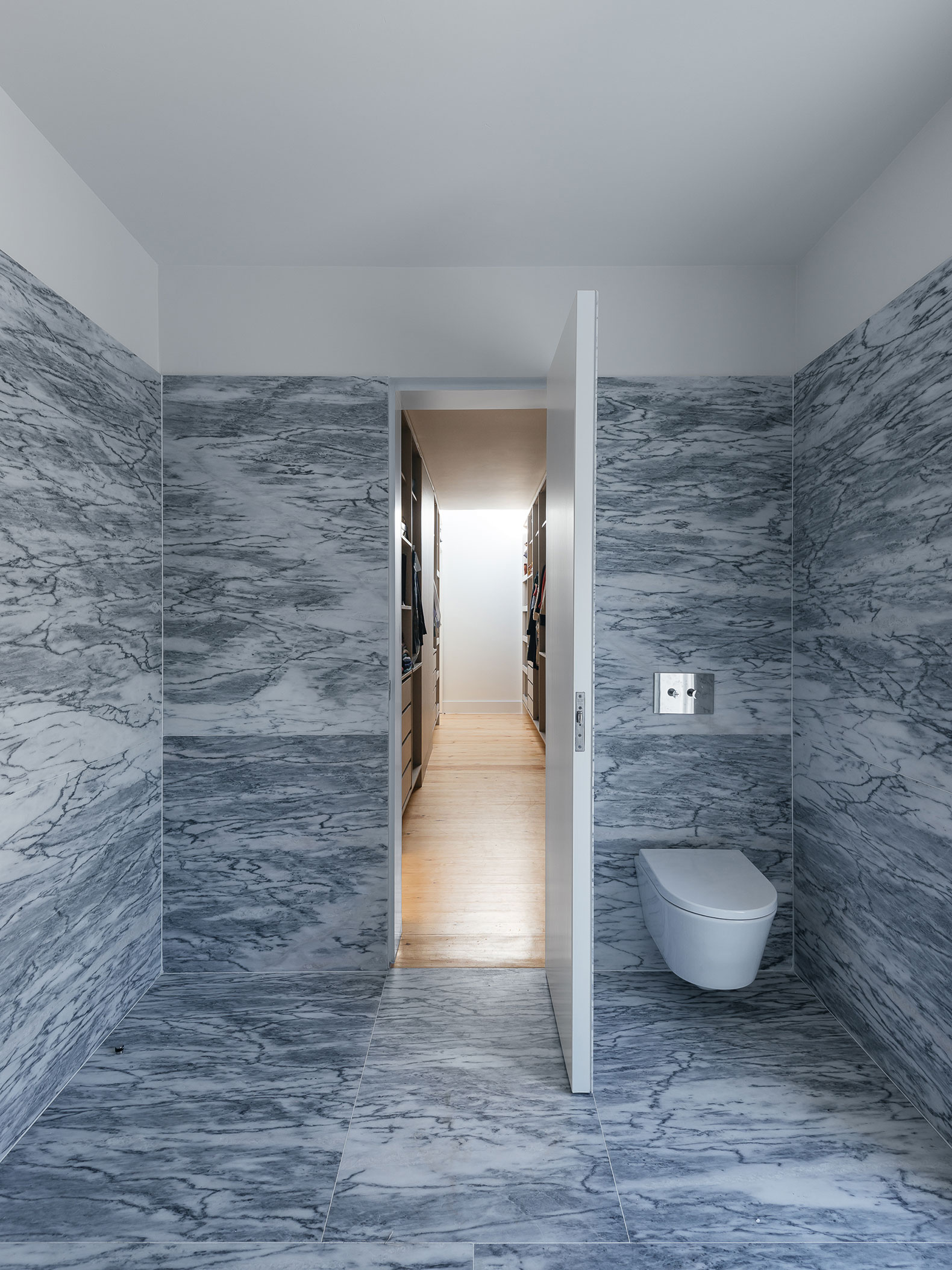 In the alignments of the new flat floor covering, the highly rational elevations and apparent symmetry find a reflection of a formal syntax that cuts across the entire house. The internal spaces are clearly joined and obey a consistent geometry and a firm functional hierarchy. The materials are perennial and receive natural light, creating a dialogue with a succinct vocabulary of textures. And the sequence of neutral, sober spaces exposed to the emptiness of the interiors creates a form of silence, in which all elements serenely occupy their places.