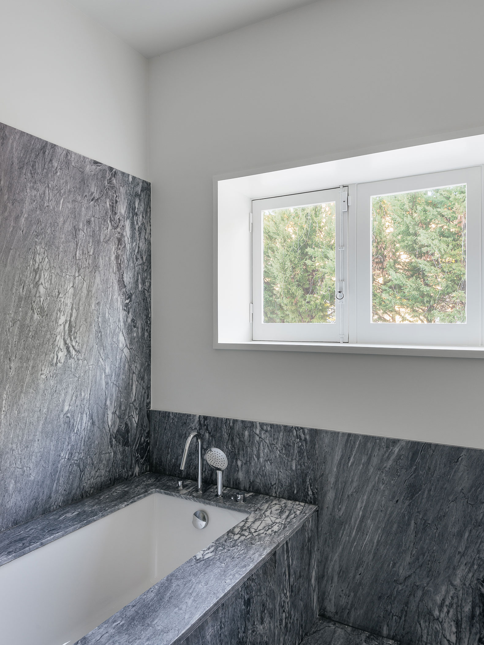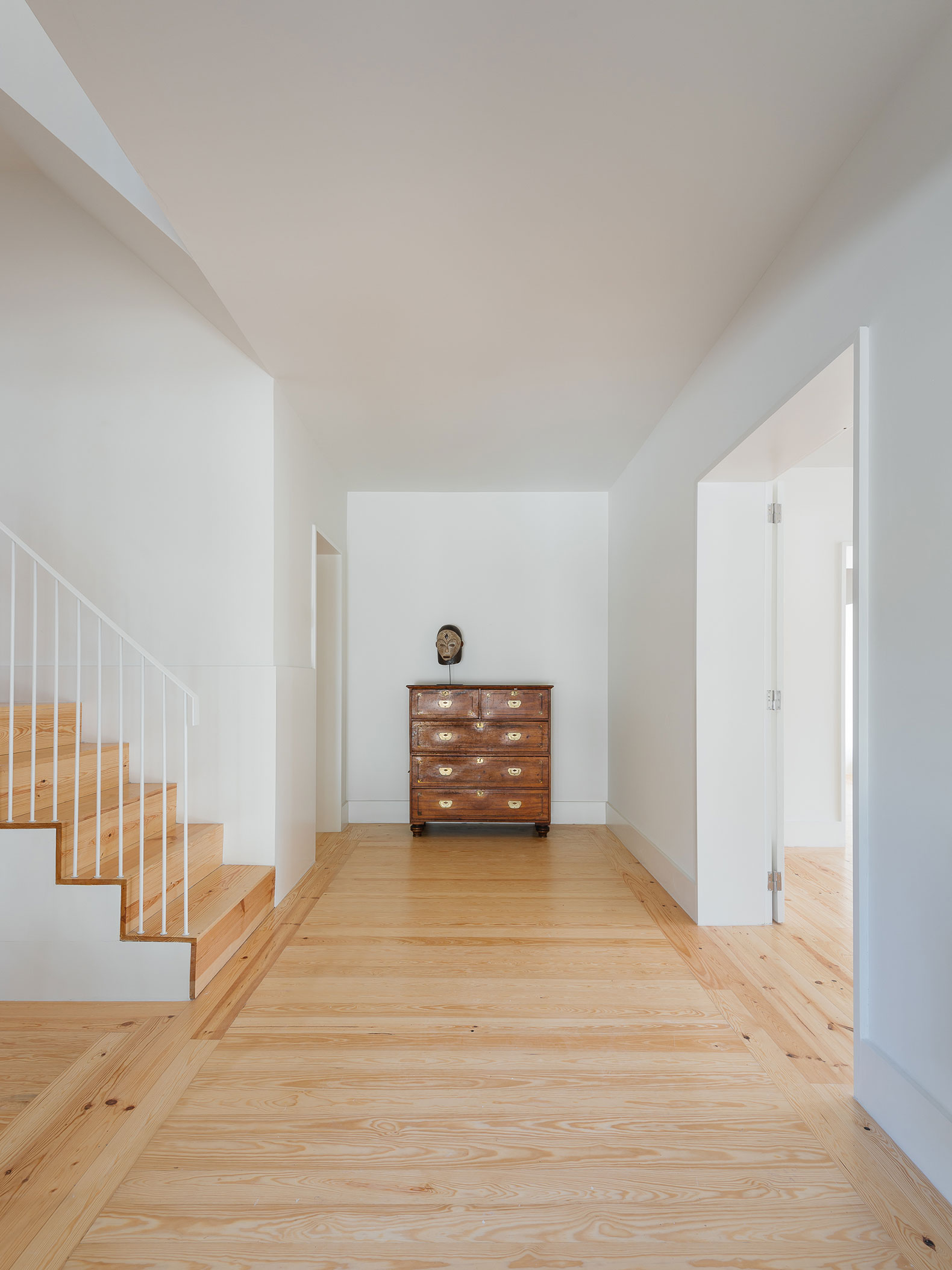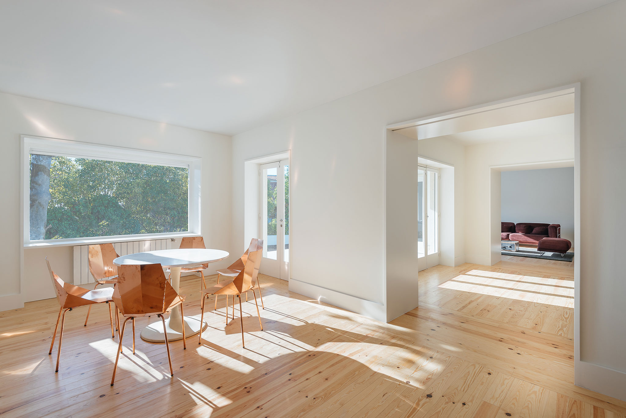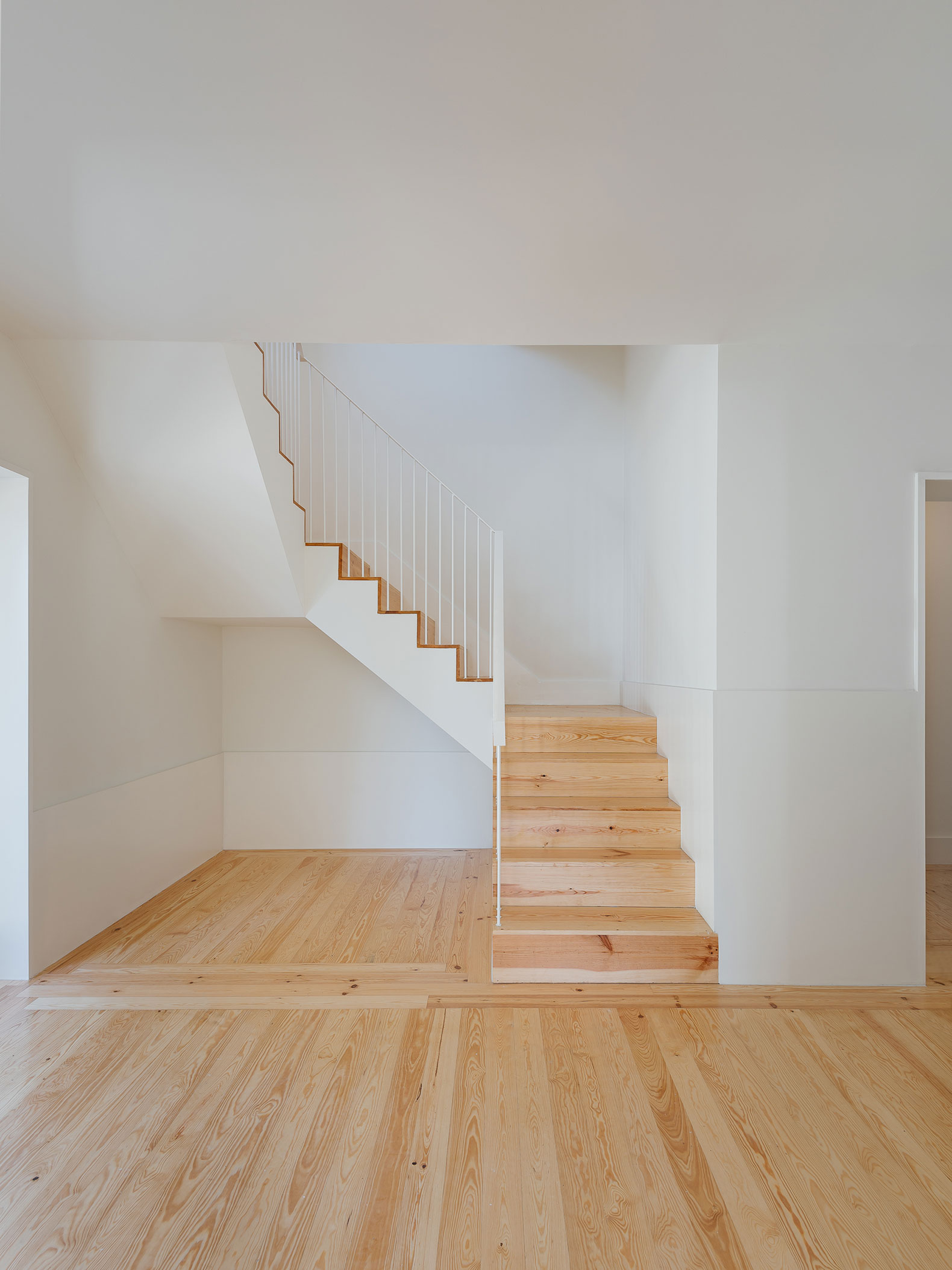 Thus, taking the diversity of the Restelo architecture (from the Soft Portuguese style to Modernism) and some fundamental references from Modern Architecture as starting points, the house has been re-contextualised through the application of a single design logic and respective formal vocabulary. This is a rehabilitation that involves a meticulous operation in which the building is lent both the atmosphere of a lost architecture and a new identity. By redesigning the house, a semiologically well-defined ambience has been created, adapted to the original scenic narrative of the district and imbued with a sense of timelessness, which seems to announce that the house was always thus.
