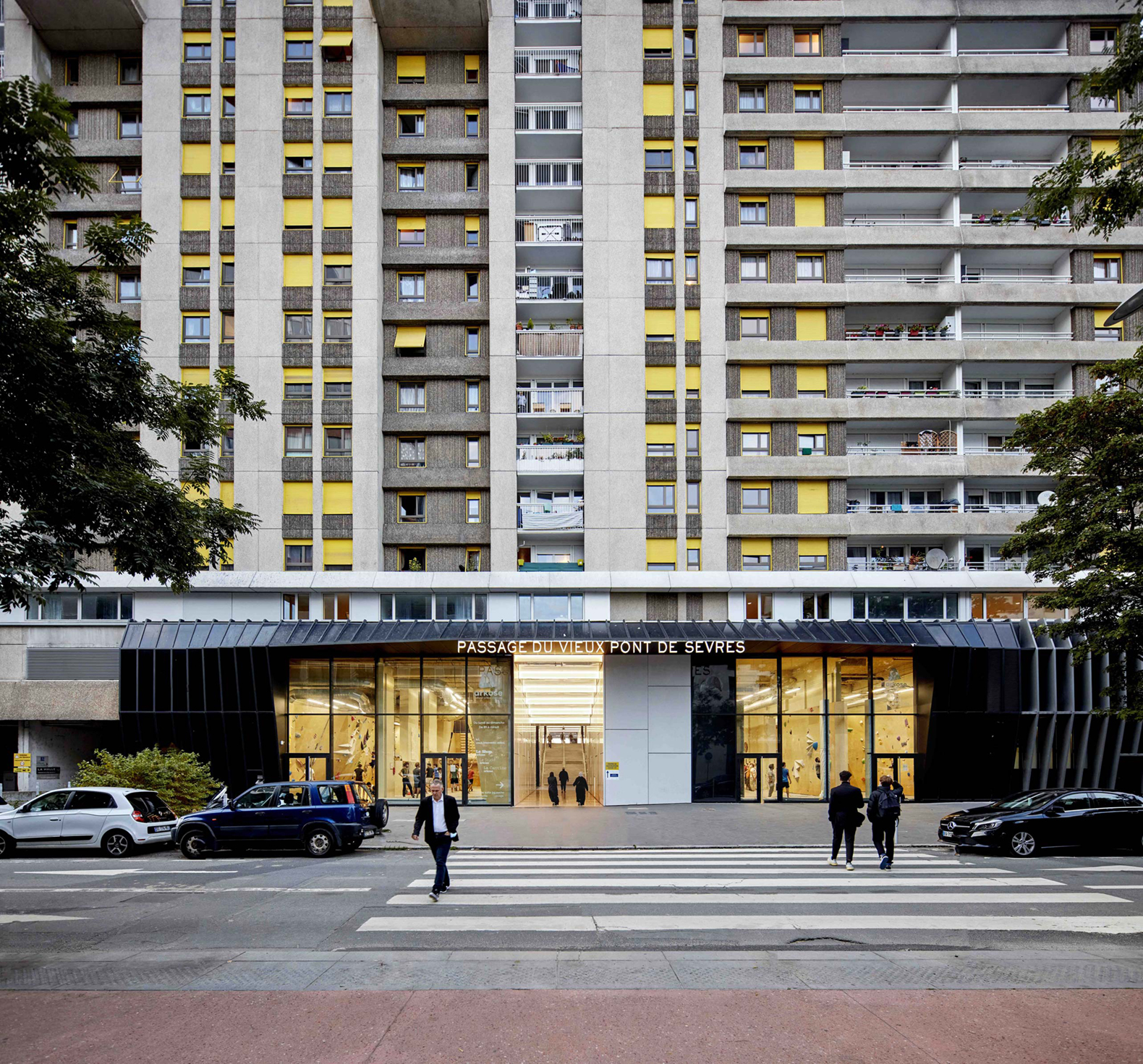 Built in the 1970s, the Pont de Sèvres is a classic concrete slab-built neighbourhood dating back to the end of the Glorious Thirties and characterised by its high level of density. Classified as a “ZUS” Sensitive Urban Area in 1996, the plan to redevelop the neighbourhood began in 2008. Priority was given to renovating the public space, specifically the Vieux Pont de Sèvres and Aquitaine passageways.