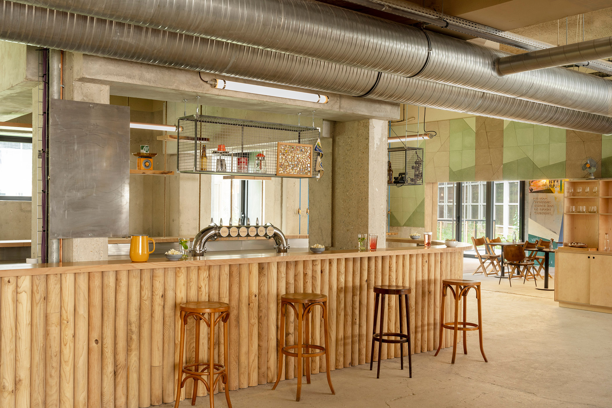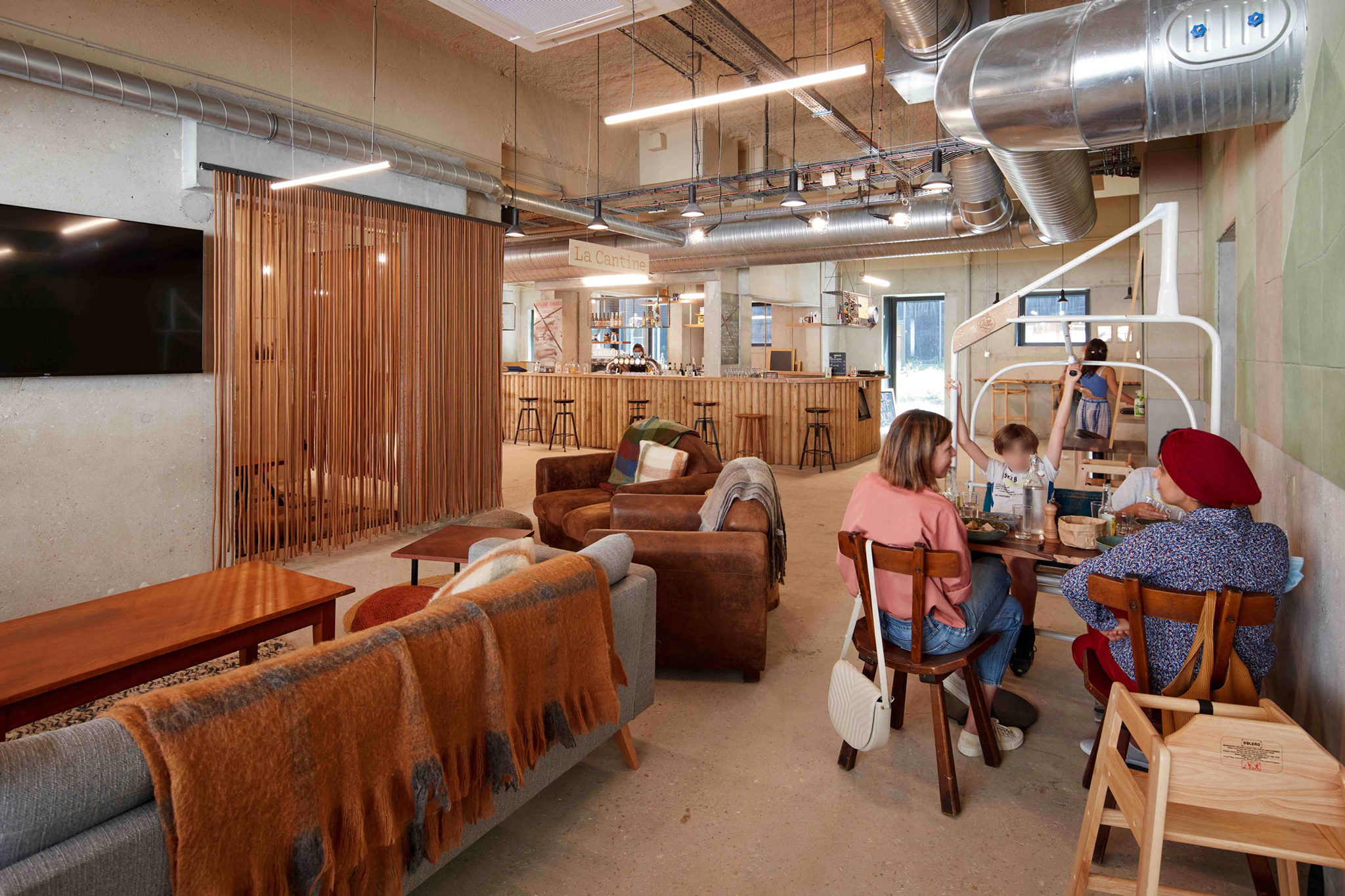 The 1,800 m² complex includes climbing walls for adults and children, fitness and yoga areas, a bar, a restaurant, and a shop. Creating an athletics facility in the heart of a rapidly transforming neighbourhood is a significant act that draws residents together and firmly anchors the project within the city.