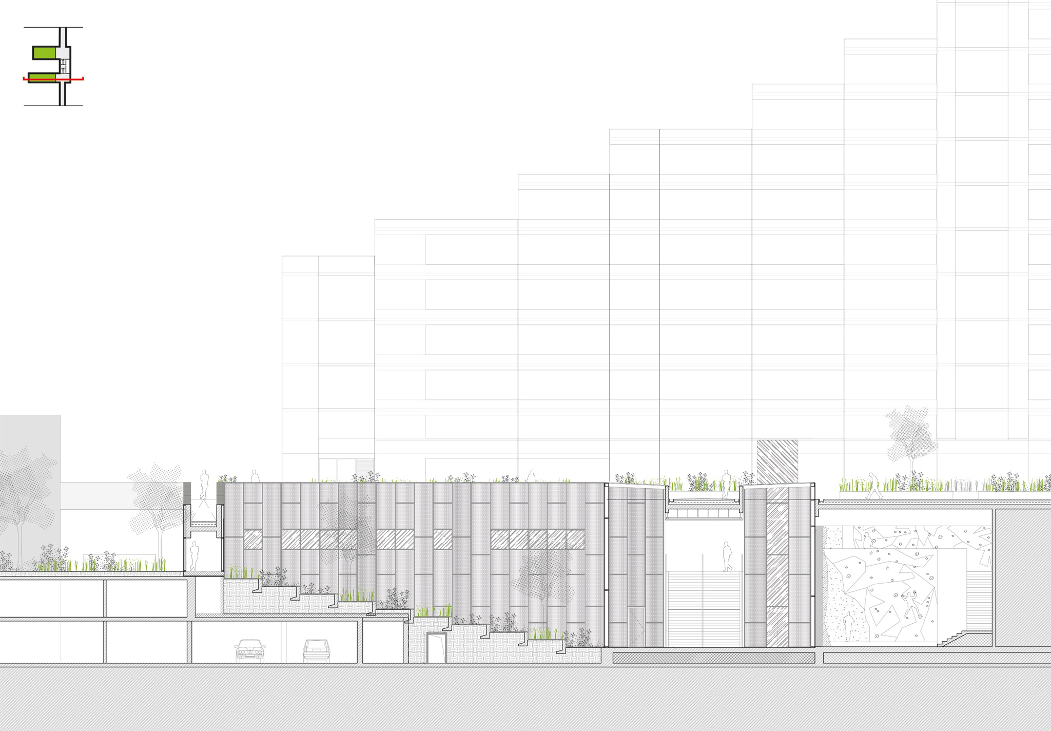 Since the summer of 2021, an indoor climbing area, a restaurant, and several shops welcome the passageway and create the social bonds between the two neighbourhoods connected by the passageway.