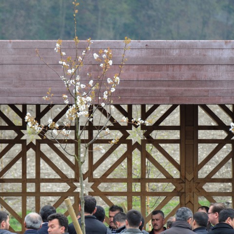 In 2004, several communities of Muslim immigrants organised a joint initiative to request a cemetery where they could bury their dead in the land where they have settled. Nine years later, and with support from the local council, the cemetery was opened. It is organised around six spaces with parallel walls which, owing to the road running past the cemetery, are staggered in their layout so that they are all oriented towards Mecca. Five of these spaces are unroofed burial enclosures, while the sixth contains facilities for ablution rites, congregation and prayer. The main entrance façade, which closes off the courtyard and the Musallah, features oak latticework, thus combining the local woodcraft tradition with the abstract geometry of Islamic art.