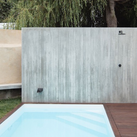 Constructively, were kept the existing techniques and materials of the main building and, at the same time, were assumed new concrete elements on the new extension. Despite this, there is a contamination of colors and materials between the pre-existing and the new, making the building a living organism. The concrete appears on the main facade owing to the necessary adjustments to create a garage entrance, however it appears as a mimetic of the existent tectonic. The ocher color from the clay soil of the property migrate to the plaster of the surrounding walls and to the pigment of the cement floor all over the ground floor. The green color, initially only on the existing tiles on the main facade, was carried over to the new tiles but also to the back yard facades and to interior carpentries that crosses all spaces.
