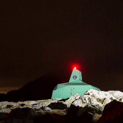 The photovoltaic panel gives energy independence for this tourism structure and is placed on the roof, at the base of the tower, which brings in the light spectacle throughout the day. The object itself becomes a signal, a lighthouse . . . for a new attitude