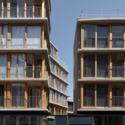 A double bioclimatic skin system completes the ensemble. Forty centimetres wide at the horizontal section and up to 1.50 metres wide on the verandas, it is designed to enable a level of climatic regulation and is responsive to the climatic conditions. During the winter, the "buffer" space reinforces the thermal insulation by capturing and amplifying the trapped air which is then heated and redistributed to the apartments. Furthermore, on the right-hand side of each of the living rooms, the verandas act as greenhouses, and offer some extra living space.