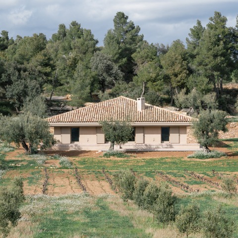 Casa EF is a private residence located in the rural setting of Valderrobres, in the province of Teruel, Spain. The house responds directly to its agricultural surroundings, where olive trees and vineyards define the landscape and inspired the spatial and material decisions of the project.