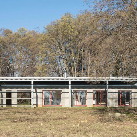 That is how we conceive this shelter. A building that disappears, showing its fundamental guts as it blends in with the woods. A prefabricated structure from GPS tecnicas metalicas. A construction that breathes through its holes and protects itself from the sun under a parasol and from the rain with an umbrella. A set of catalogue solutions, nothing more, which were handy and of course the materials we found in the warehouse in Oropesa at the lowest price. With a bit of help that is, from Miguel and Almudena, the locksmiths from Madrigal. Here, architects were mixed together with local tradition and available materials.