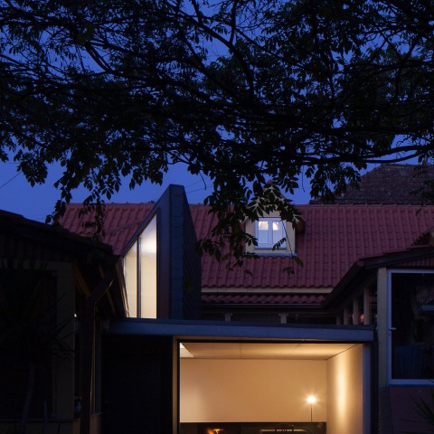 In order not to disrupt the house´s daily life, the main structure was built without destroying the existent windowed yellow wall. Thus, the project comes up with the idea of placing a slab in exposed concrete that supports the existing coverage and stands in tension with the movement of the upper bound gallery. A large skylight emerges in traditional slate shingles, evoking the same material use as the existent vernacular kitchen on the plot´s opposite side and providing light and ventilation to the new living room.The existing pavement was kept as wellas the existent roof.