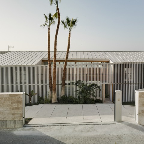The most public program is concentrated in the central space, an open space that connects a landscaped patio with the living room and finally with the terrace that extends towards the sea, while the most private parts are on the sides.