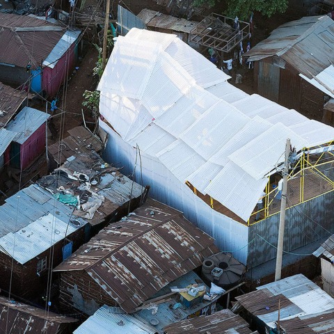 The project began when the firm’s principals, José Selgas and Lucía Cano, visited Kibera two years ago; it was one of the “saddest days of my life,” says Selgas. SelgasCano then persuaded the Louisiana museum, which had approached them to create a summer pavilion for its garden in Copenhagen, to design something that could be shipped to Kenya afterwards.