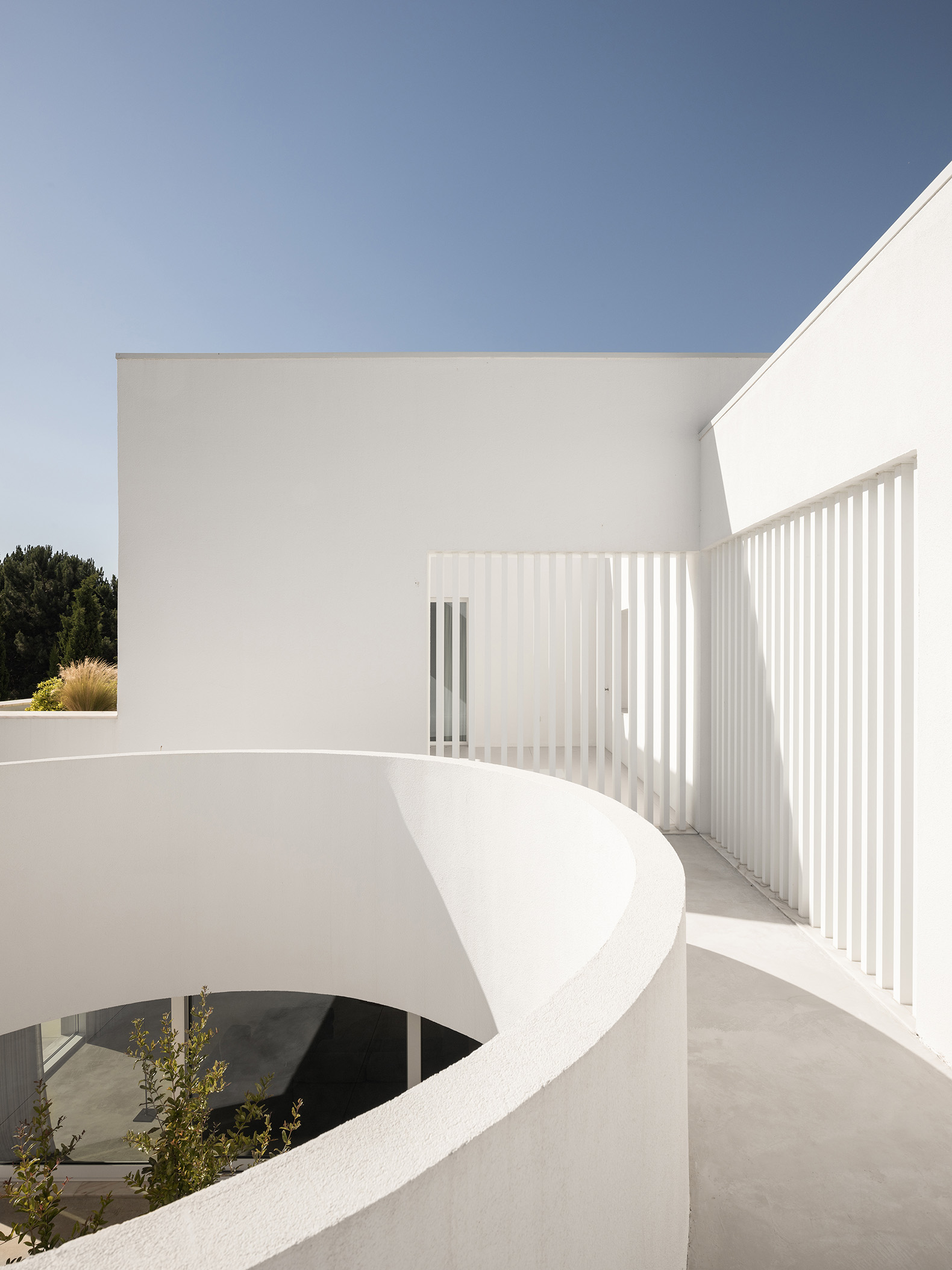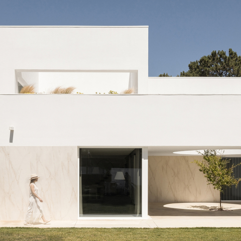 Nestled near Aroeira, where the Atlantic breeze meets the pine forest, this house emerges as a discreet retreat — a private, simple, and refined dwelling shaped by the clients’ desire for serenity and introspection. It reinterprets the Mediterranean and Islamic courtyard typology, forming an introverted spatial composition where patios regulate light, air, and temperature, dissolving boundaries between interior and exterior through subtle thresholds.