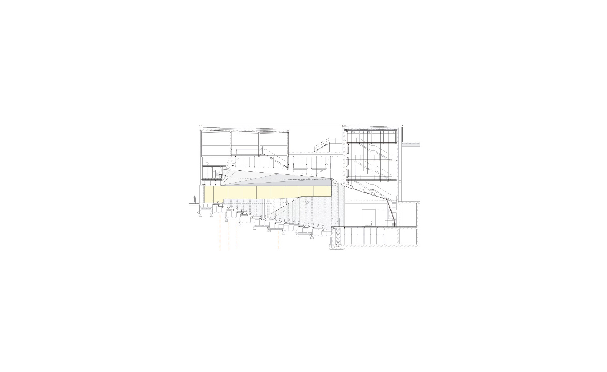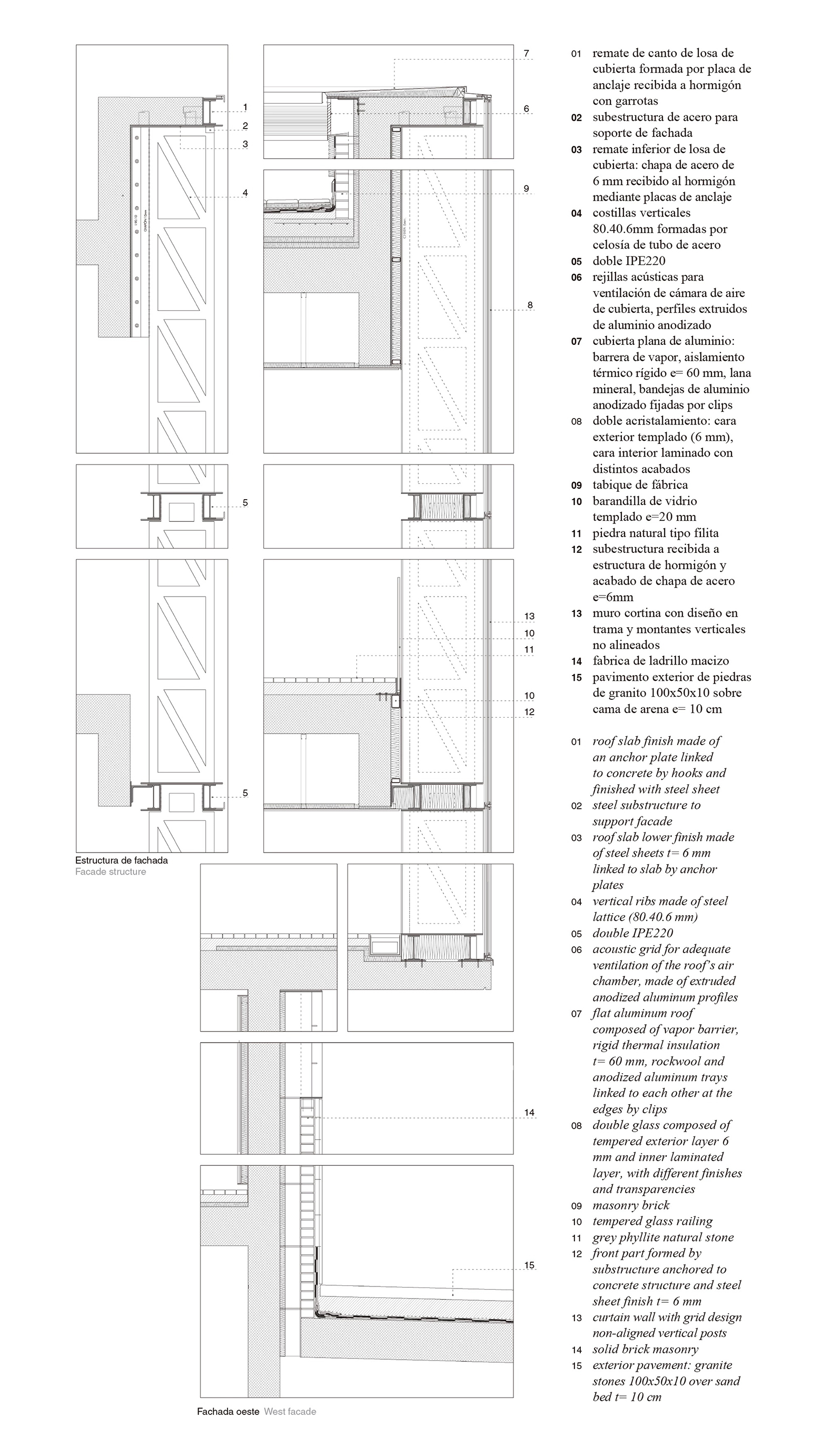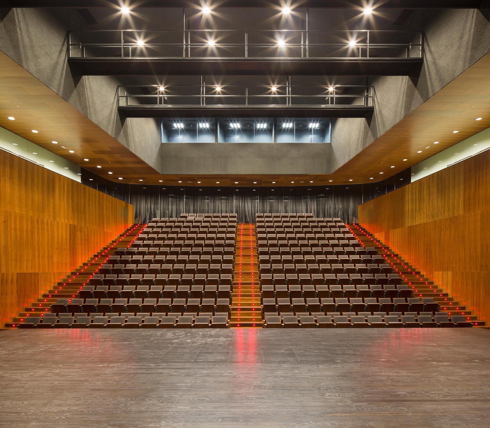This spectacular programmatic condenser and urban plinth, designed by Paredes Pedrosa, consists of a large, broken, and elongated volume in which the different functions are successively added, playing with varying heights and sizes according to their requirements. The program is dominated by its two large auditoriums, seating 900 and 300 people, which stand out most prominently in its formal composition.