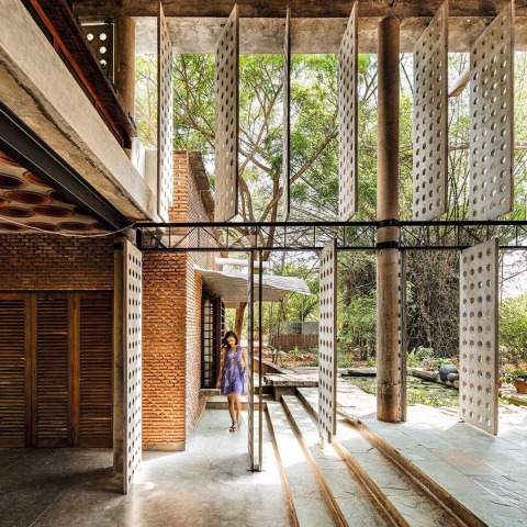 Wall House is situated outside the planned city limits of Auroville, in Auromodele, an area designated for research and experimentation. The architect’s residence, it compactly accommodated everyday needs whilst effortlessly expanding to absorb guests. It attempted to not only redefine the building program for a private-residence; it tested various spatial and technological innovations to inform other projects. Spatially, it redefined borders and transitional spaces in response to the climatic conditions and contemporary culture.