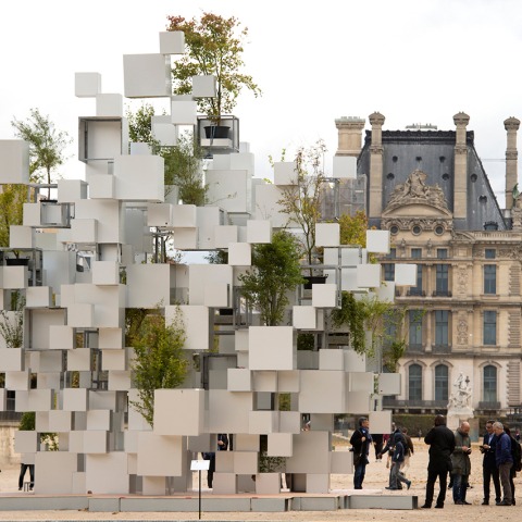 Sou Fujimoto, born in 1971 in Hokkaido, is a contemporary Japanese architect, author of a concept that at first seems seems contradictory : "Future Primitive". Although he situates himself within the legacy of Japanese culture, he brings a new vision to architecture by developing a unique formal vocabulary based on the principle: "1 nothing + 1 nothing = something". In 2013 he was commissioned to create the 14th Serpentine Gallery Pavilion in London. With Many Small Cubes, exhibited in the Tuileries gardens, he signs his first work in Paris. Many Small Cubes is a small nomadic house which incarns a new concept associating art and architecture Galerie Philippe Gravier has undertaken the production of a series of "Maisons d’édition", which can be likened to architectural "jewels" or "folies", by artists and architects of international renown. All are nomadic structures, alternatively removable and perennial, which are inscribed in the artistic landscape just as they are in the environment.