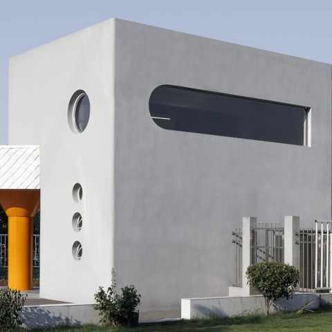 Under tight budget cost control, the architectural renovation design the building 5 X 7 has retained the old building boundaries, and the extended canopy is used to break the conventional boxy shape, which also serves as the building's main entrance. The idea of the special-shaped entrance canopy not only fulfills its function of providing shelter from the elements but also introduces subtle "reconstruction" changes within the existing architectural framework. As a new structural element, it brings a sculptural language to the building, and the abstract goose-foot shape infuses it with vibrancy and humor.