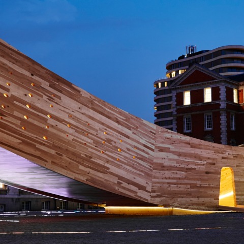 The Smile is one of the Festival’s Landmark Projects, which can be inhabited and explored by the public. The spectacular, curved, tubular timber structure measures 3.5m high, 4.5m wide and 34m long and is effectively a beam curving up at both ends. Showcasing the structural and spatial potential of cross-laminated American tulipwood, Alison Brooks' concept is the first ever ‘mega-tube’ made with construction-sized panels of hardwood CLT.