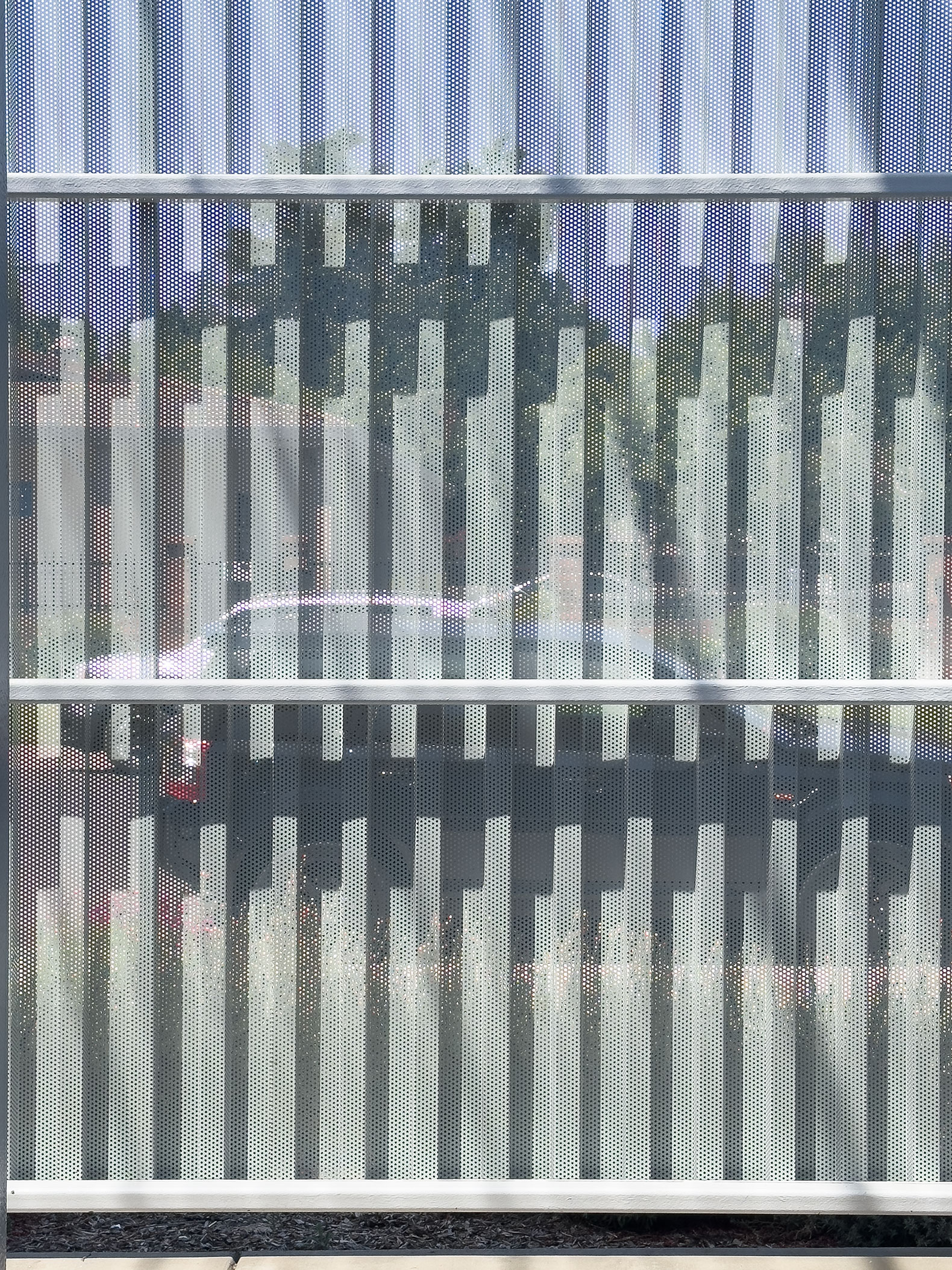 The building, organized around the central garden and courtyard, was designed using passive design strategies to create new landscapes and habitats that support ecological processes—such as species migration and pollination—through the use of drought-resistant landscaping. Water quality is preserved by filtering sediment from runoff before it reaches rivers and streams.