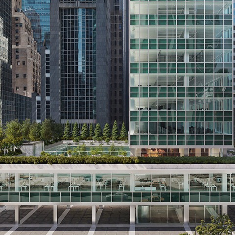 After Lever House, Bunshaft was involved in the design of several prominent buildings, including the Connecticut General Life Insurance Company headquarters (1957) in Bloomfield, Connecticut; the Pepsi-Cola Building (1958-60) on Park Avenue; the United States Air Force Academy (1959) in Colorado Springs; Chase Manhattan Bank Headquarters and Plaza (1960-61) and 140 Broadway (1964-67) in lower Manhattan; the Beinecke Rare Book and Manuscript Library (1963) at Yale University; the W.R. Grace Building (1973) at West 42nd Street; the Lyndon Baines Johnson Library (1971) at the University of Texas, Austin; the Hirshhom Museum and Sculpture Garden (1974) in Washington, DC; and the National Commercial Bank (1983) in Jeddah, Saudi Arabia.