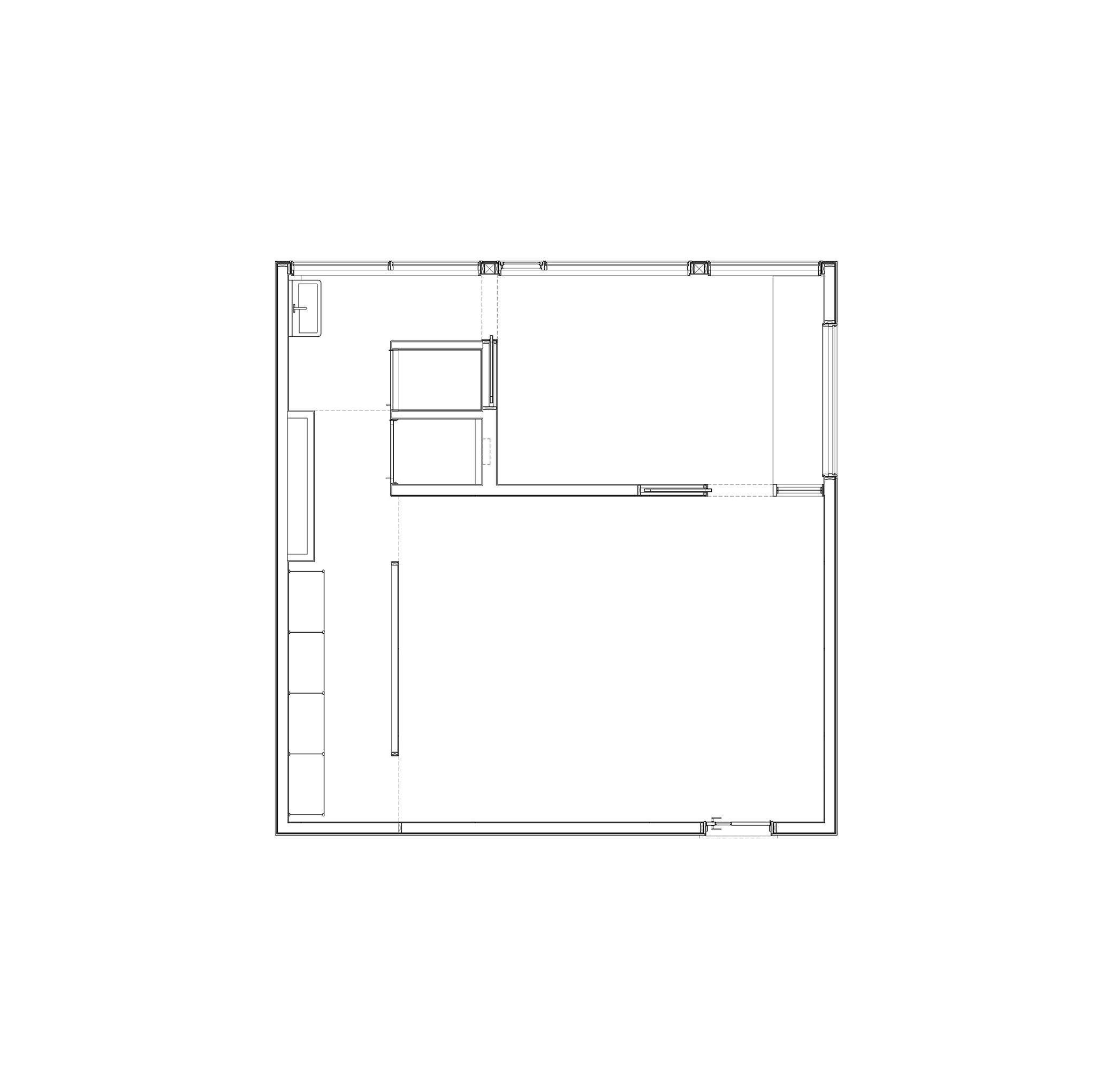 The floor is entirely CDX plywood, which also covers the walls of the studio so that it may remain durable, flexible, and unfussy. A north-facing clerestory illuminates the space for painting while allowing for complete privacy.