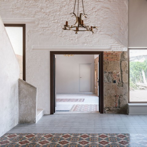 Some of the noblest finishes or decorative elements that were in the part of the old house have been extended to the rest of the rooms so that they are a recognizable motif that helps to effectively integrate the new set. Thus, hydraulic pavements or chandeliers have colonized other areas, adding an ambiguous nobility to the old productive spaces. For the same purpose, the colours of the original pavement have been diffused in the new floors, ceilings and walls, amplifying the footprint of the pre-existing.
