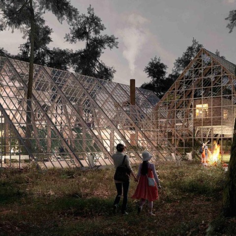With a point of the departure in the idea of ‘giving more than we take’, different sustainability measures will be implemented to create a farm where materials, life quality, biodiversity, energy and water are guiding star concepts. A building-integrated greenhouse shell will contribute to extending the season, bringing the outdoors indoors. The wooden structures of old barns from the surrounding area will be reused as the load bearing structure in the Third Space. The inner walls will be made out of rammed earth from the site, while the outer ones will be built from stones and boulders uncovered during the excavation and clearing of the land. These concepts make it possible for Stedsans in the Woods to become the self-sufficient lab of tomorrow where all resources are cared for with respect for the nature that make for the location. Together, the guiding principles generate an urban symbiosis for the family inhabiting the home and the guests embarking on a journey in the deep woods of Sweden.