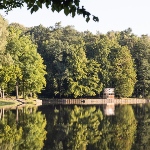 The pavilion invites people to a close experience with nature, focusing visitors' attention on the water reservoir - views, sounds, and movements. It forces a person to stop, to slow down thanks to the endless view into the treetops, the defined view of the boundless calm water surface and the gentle closure from the surrounding bustle of everyday life. The interior of the pavilion comfortably accommodates 6 people, sitting face-to-face around the table during the tea ceremony, which gives the ceremony a certain impression of intimacy. The subtle/light, open construction refers to the traditional Japanese interior but brings modern elements into it. It fits harmoniously and delicately into the surrounding environment.