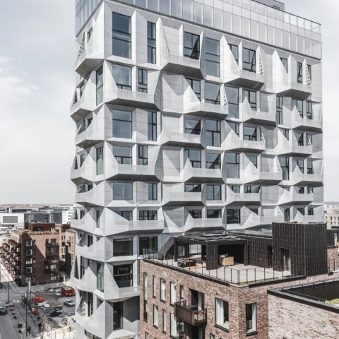 The 17-storey transformed silo is a natural point of orientation in Copenhagen’s new neighborhood Nordhavn.