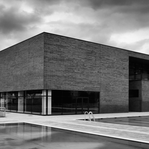 The distribution organizes three functional parts: a main big room with a pool for water polo (33 x 25 m) equipped with a 800 seat grandstand, a nucleus of changing rooms on three levels, (athletes, users and fitness) and a room with two small pools for courses.